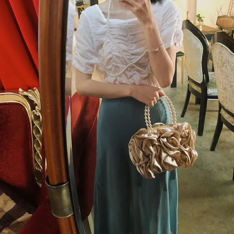 Handmade pearl handle, the flowers on the bottom are artificially glued on