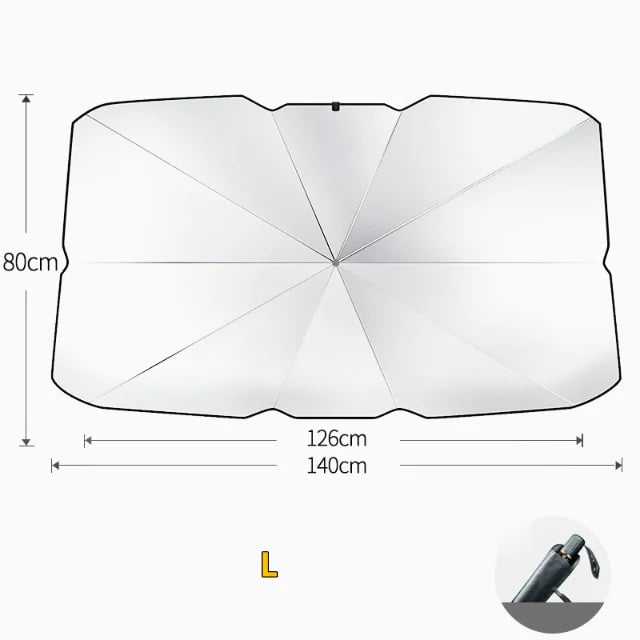 - Unlike other umbrella sunshades that come in only one size, our windshield reflector is available in two sizes to offer your car impeccable protection from the sun by providing the perfect windshield coverage!