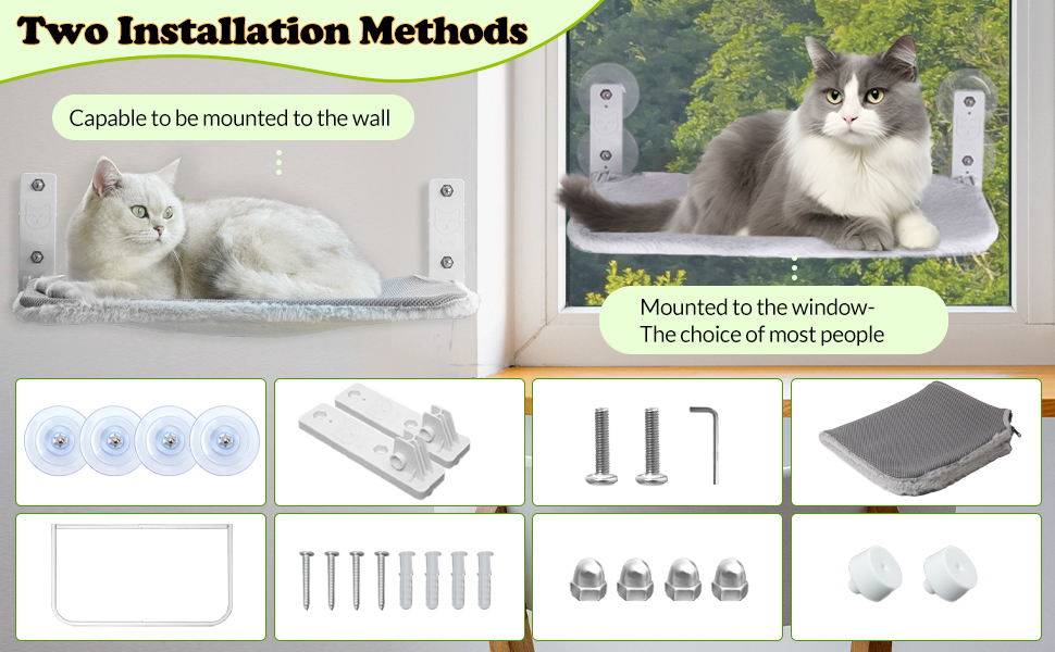 - Easy Installation: No tools or special skills required! Our cat window Hammock installs in 3 minutes. Simply attach the suction cups to any window and watch your cat enjoy their new favorite spot in no time.