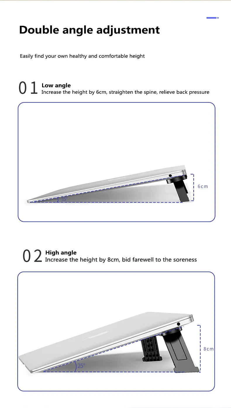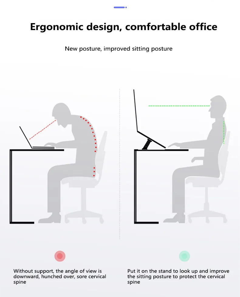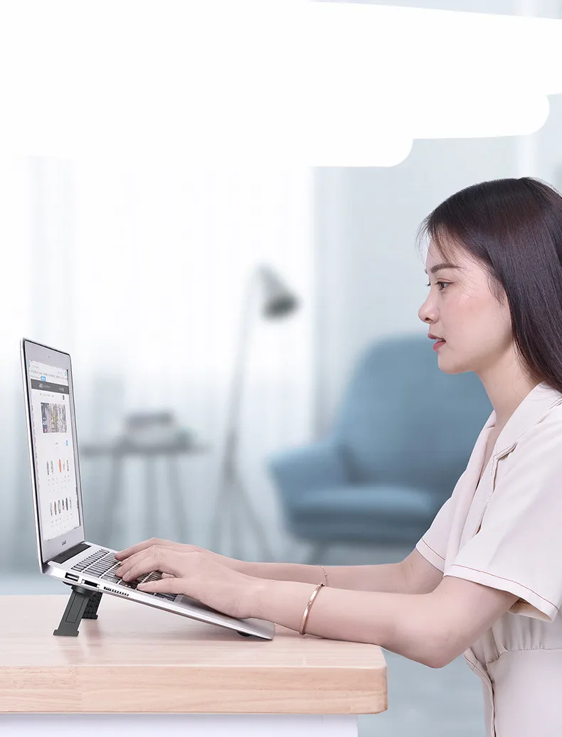 The Foldable Laptop Stand Base Non-slip Desktop Holder is an essential accessory for anyone who works or studies on a laptop. Its versatility makes it suitable for use at home, in the office, or while traveling. Say goodbye to back and neck pain and enjoy a more comfortable and productive workday.