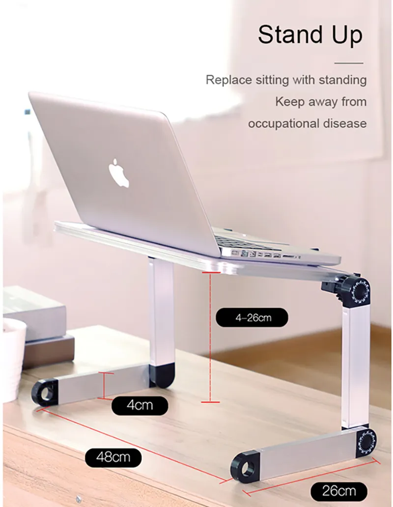 The Foldable Laptop Stand Ergonomic Desk Tablet Holder is a versatile and essential accessory for anyone who works or studies from their laptop or tablet. Designed with ergonomics in mind, this foldable stand helps to improve posture by elevating your laptop or tablet to the perfect eye level, reducing neck and back strain during long hours of work. Whether you're in the office, at home, or on the go, this stand offers a practical and comfortable solution for those who spend significant time at their desks, making it ideal for professionals, students, and digital nomads.