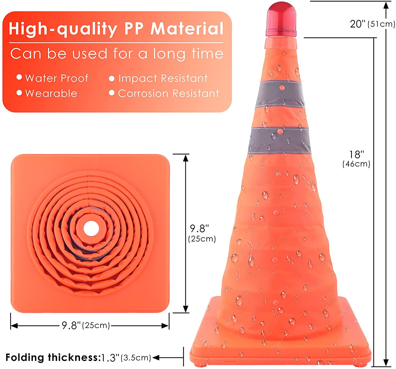 Foldable Traffic Reflective Safety Cone with LED Lights