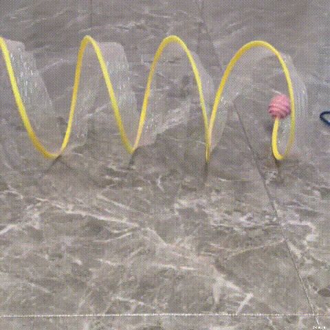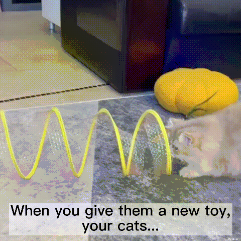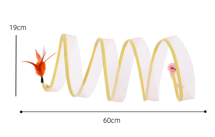 Stretchy shuttle tunnel, so that cats can be free to travel through it, both sides with the cat's favorite mice and feathers, respectively,