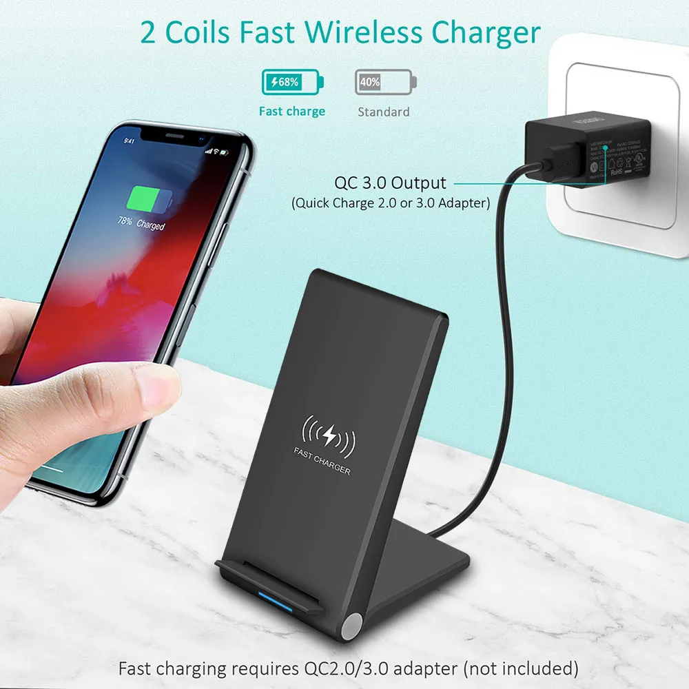 Folding Wireless Charger For Mobile Phone Vertical Wireless Charging Stand