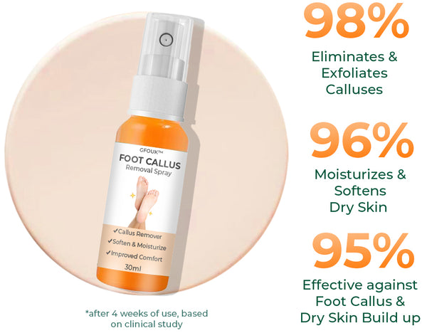 As a Dermatologist, I recommend this GFOUKâ„¢ Foot Callus Removal Spray to patients who have foot callus, pain, or other skin concerns on their feet. Our GFOUKTM Foot Callus Removal Spray, which includes a range of minerals, vitamins, and organic compounds, assists in softening callus and dry skin, making it easier to remove and preventing infections.