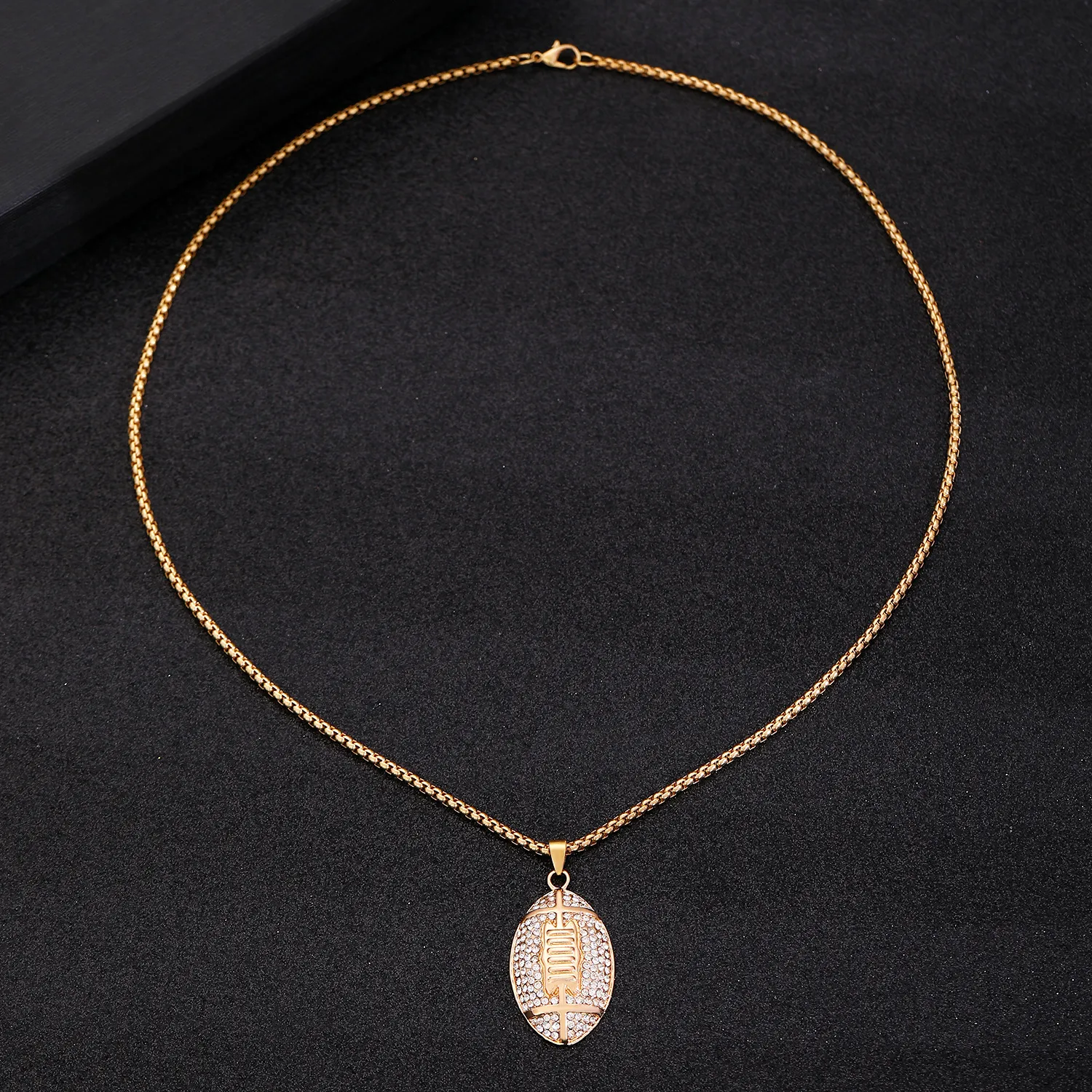 Introducing our Football Pendant Necklace, the perfect accessory for football fans and sports lovers alike. Crafted with attention to detail, this necklace features a beautifully designed football pendant that captures the spirit of the game. Made from high-quality materials, it offers durability and style, making it suitable for everyday wear or special occasions. The pendant hangs elegantly on a sturdy chain, ensuring a comfortable fit. Whether you're heading to a game, hanging out with friends, or looking for a unique gift for a fellow football enthusiast, this necklace is a fantastic choice. Celebrate your love for football and elevate your accessory collection with this charming pendant necklace!
