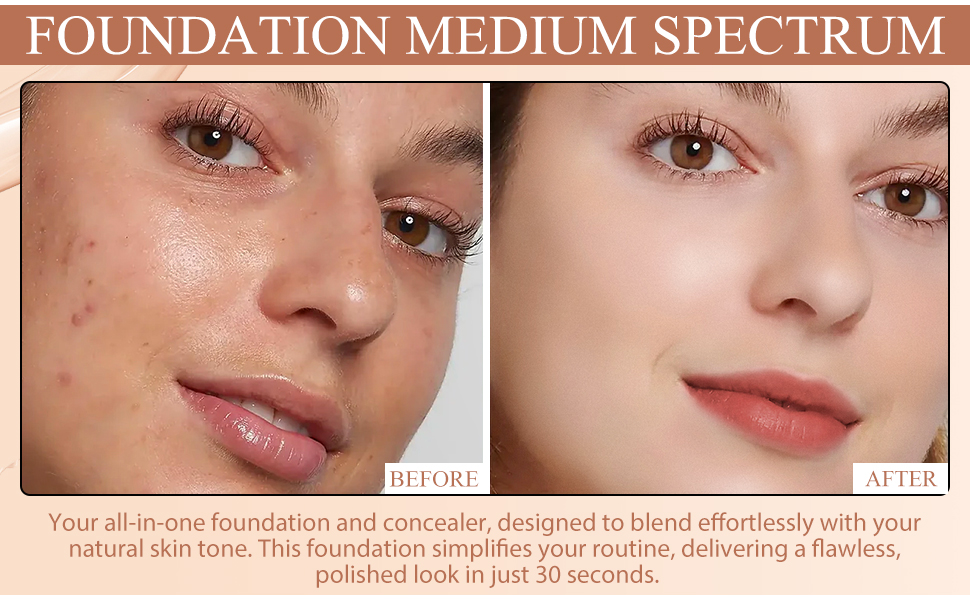 - 【SKIN-FRIENDLY FORMULA】Our foundation glides on smoothly, blending seamlessly with your skin tone for a perfect match every time.This foundation eliminates a lot of steps and moisturizes 30 seconds after application to leave your skin looking radiant.