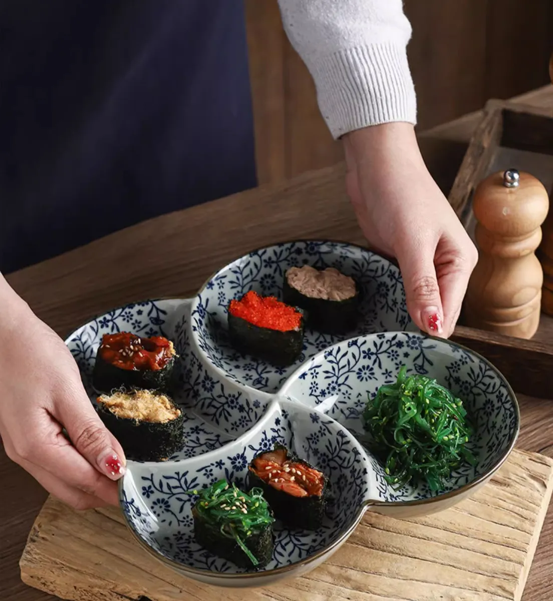 Four-grid Plate Cooking Retro Tableware Ceramic Fruit Platter