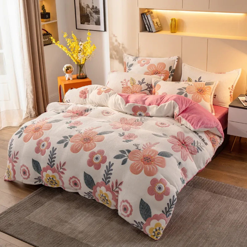 The milk velvet material is perfect for cold weather, as it retains heat effectively, ensuring a comfortable and warm night’s sleep. Whether you're in the heart of winter or simply enjoy a cozy sleeping environment, this bedding set has you covered.