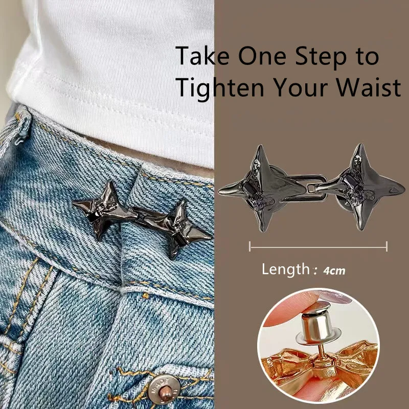 Elevate your wardrobe with the Four-Pointed Star Adjustable Waist Tightening Tool, a stylish and practical accessory designed to enhance the fit of your jeans and other bottoms. Whether you’re looking to tighten a loose waistband or add a trendy accent to your outfit, this fixed waist buckle combines form and function seamlessly.