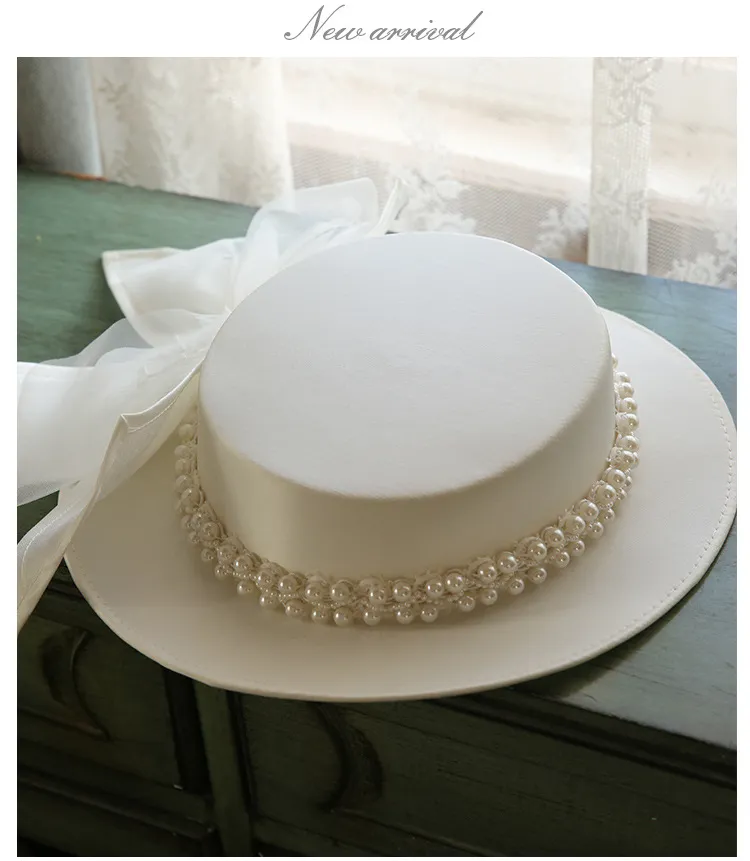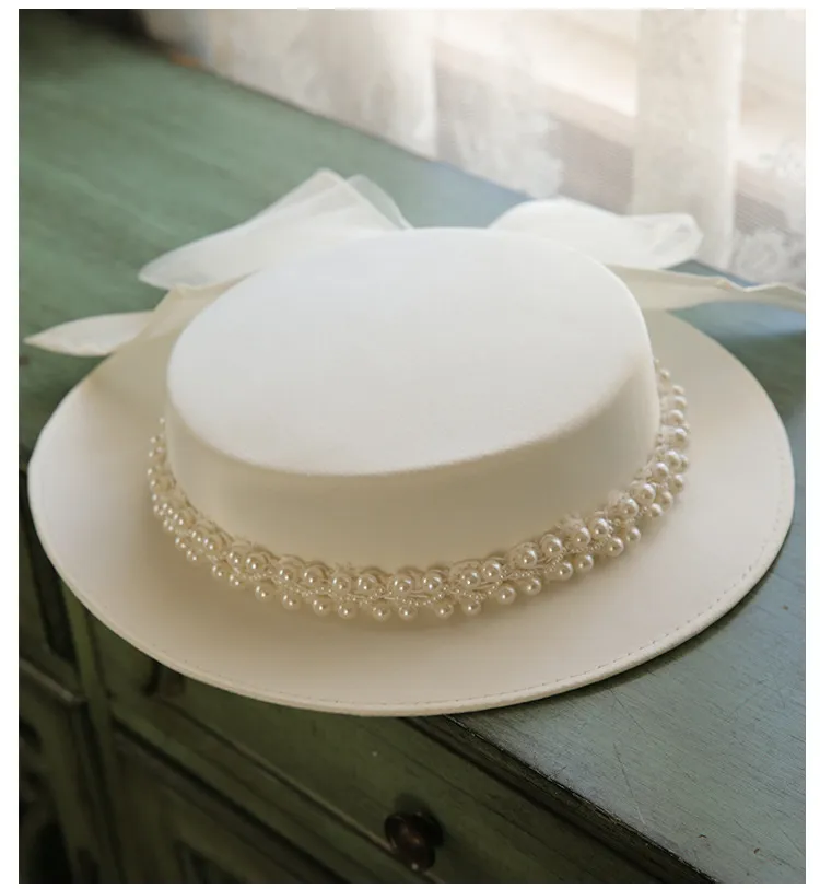 French Elegant Pearl Flat Top Hat Women