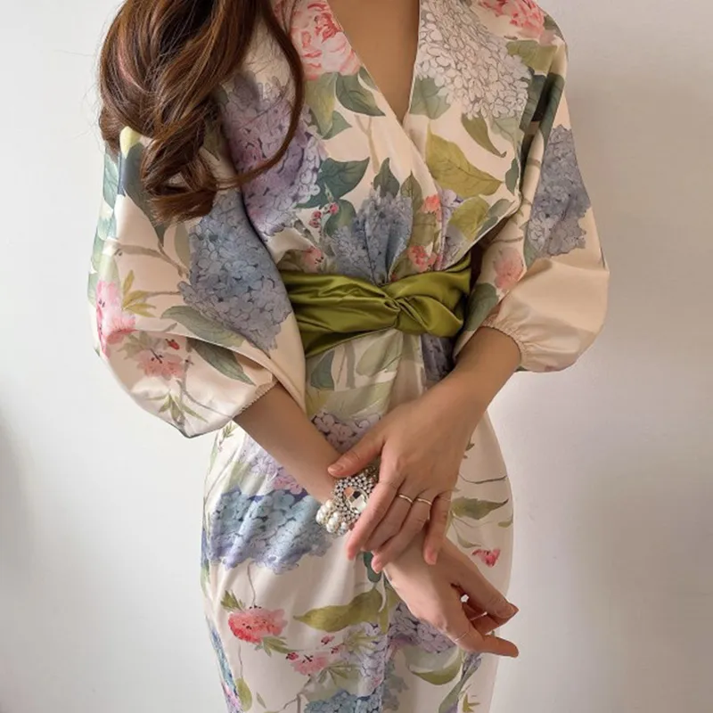 Embrace the effortless charm of French elegance with our V-neck Decor Printed Kink Dress. This chic dress combines classic style with a unique twist-knot detail, creating a timeless silhouette that flatters every figure. Designed with a soft, flowing fabric that drapes beautifully, this dress is perfect for any occasion, from daytime outings to evening soirees. The delicate V-neckline and intricate print add a touch of sophistication, making it an ideal choice for anyone seeking a refined yet modern look.