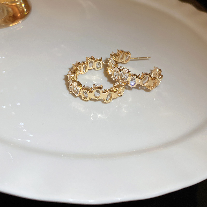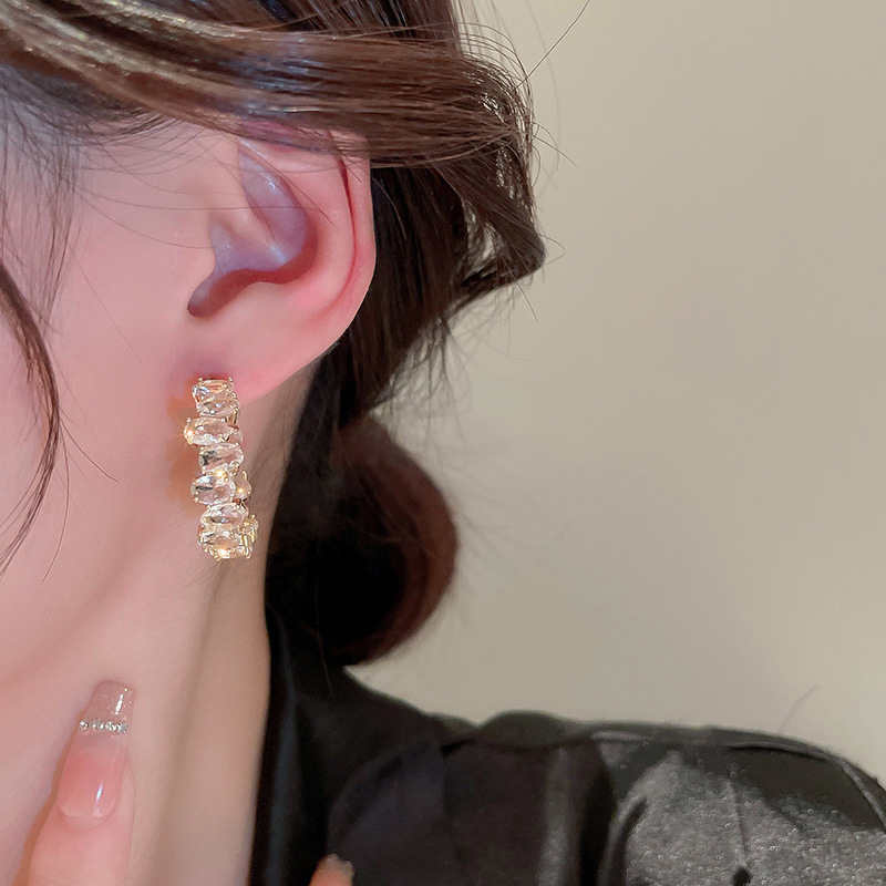 French Sweet Vintage Zircon C- Shaped Geometric Ear Ring