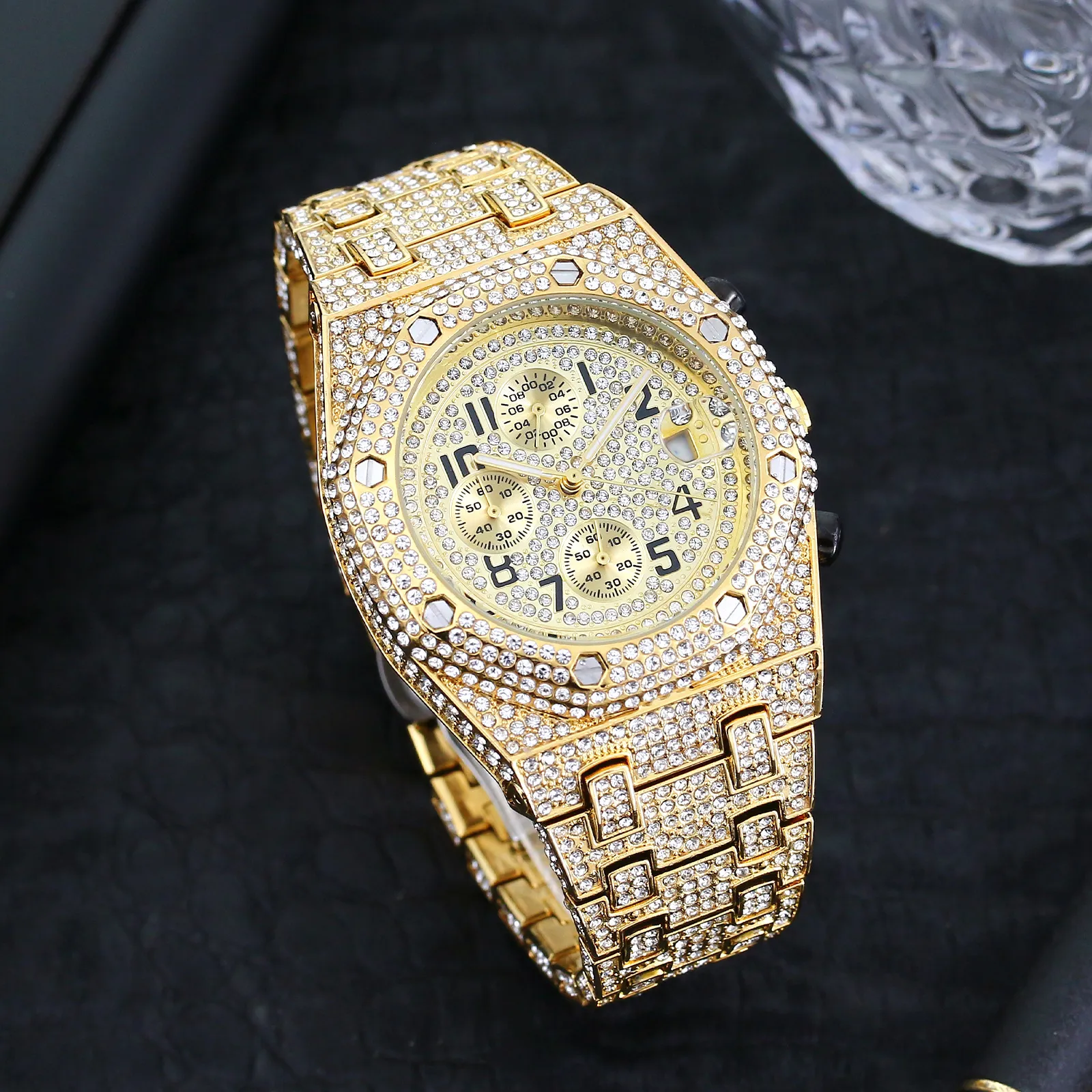 Thanks to its elegant design and practical features, the Full Diamond Three-Eye Timing Sports Quartz Men’s Watch can be worn for various occasions. Dress up for formal events or wear it casually to add a touch of luxury to your everyday outfit. Its versatility ensures that it suits any occasion—whether it's a night out, business meetings, or weekend activities.