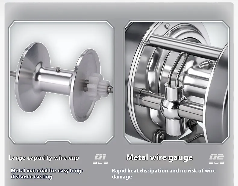 The Full Metal Lure Fishing Wheel comes with a large-capacity spool, allowing you to carry more fishing line. This feature is particularly beneficial for boat fishing, where long casts and deeper waters often require more line to reach the target. A larger spool also makes it easier to handle bigger catches that may pull more line during the fight.