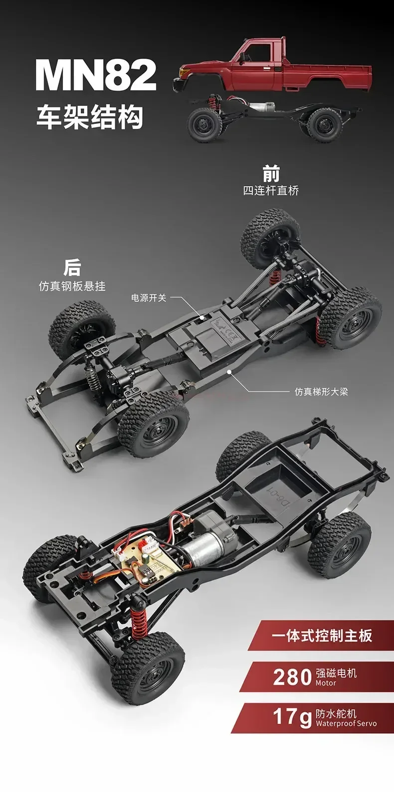 2. Key Features of the Full Scale RC Car MN82 1:12 2.4G 4WD Off-Road Crawler Pickup Truck