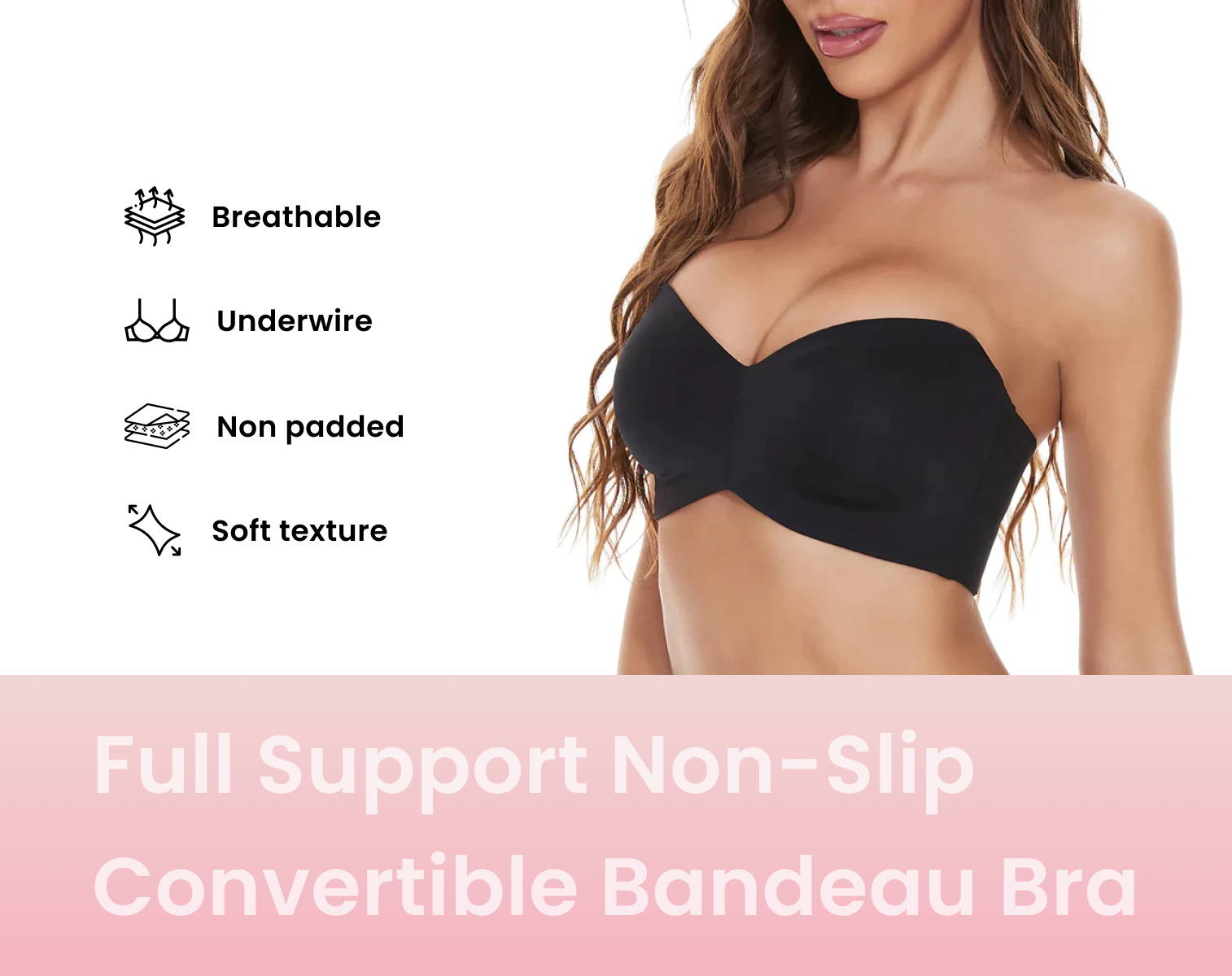 Full Support Non-Slip Convertible Bandeau Bra - Flash Sale Ends MidNight