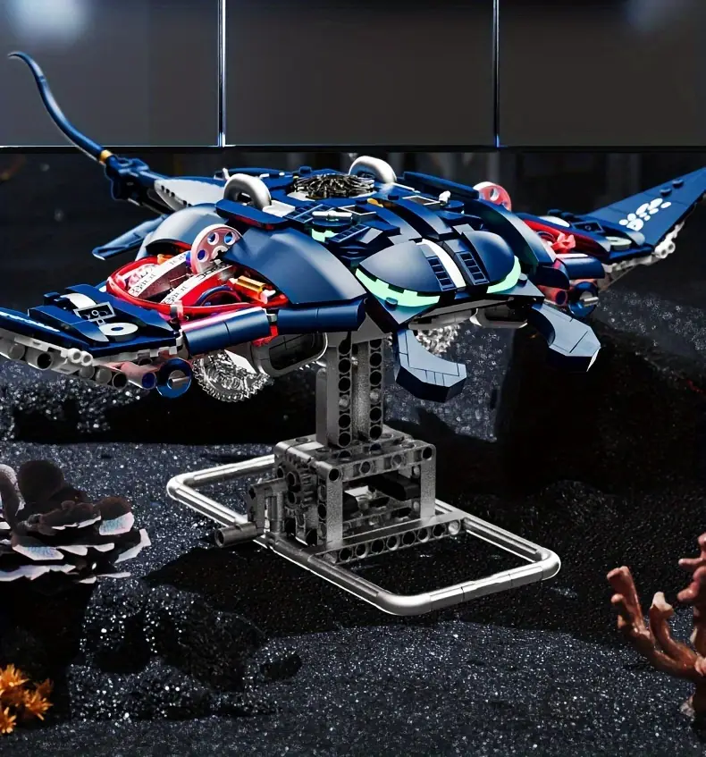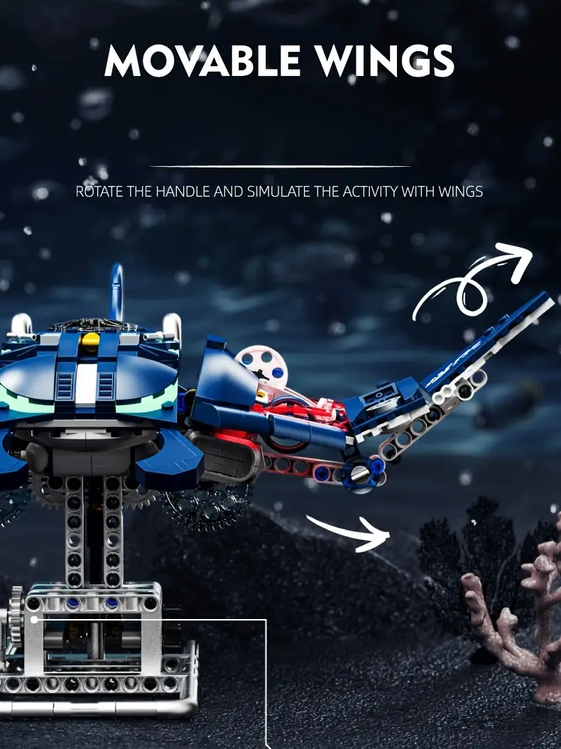 FUNXINEE Technical Mechanical Manta Ray Sea Animal Mobulidae Life Set Display Stand Building Blocks Bricks Creative Model