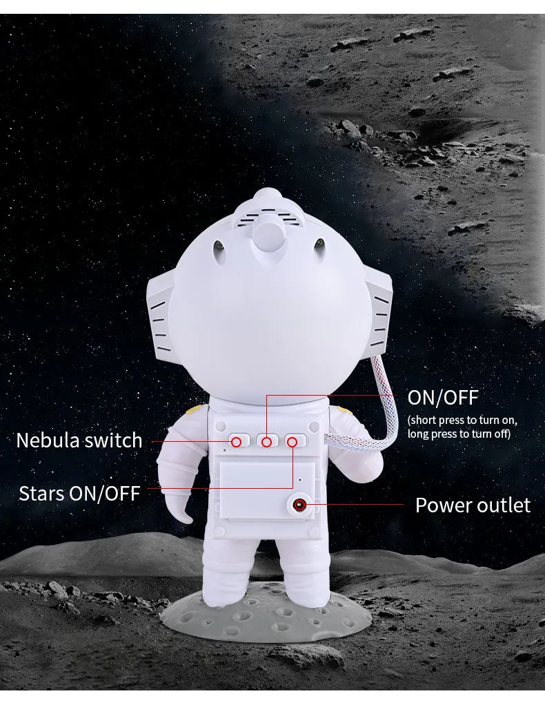 Perfect for bedroom decor, home lighting, or as a gift for astronomy enthusiasts, this galaxy projector is designed to project a realistic starry night sky across your walls and ceiling. With its charming astronaut design and vibrant light projections, it is not only functional but also adds a playful, futuristic touch to any room.