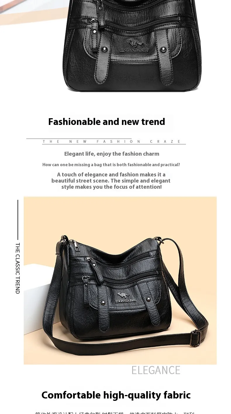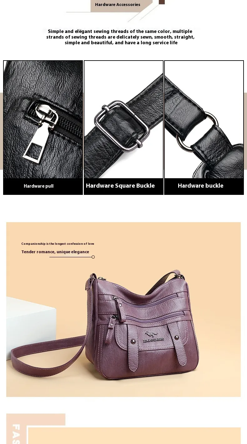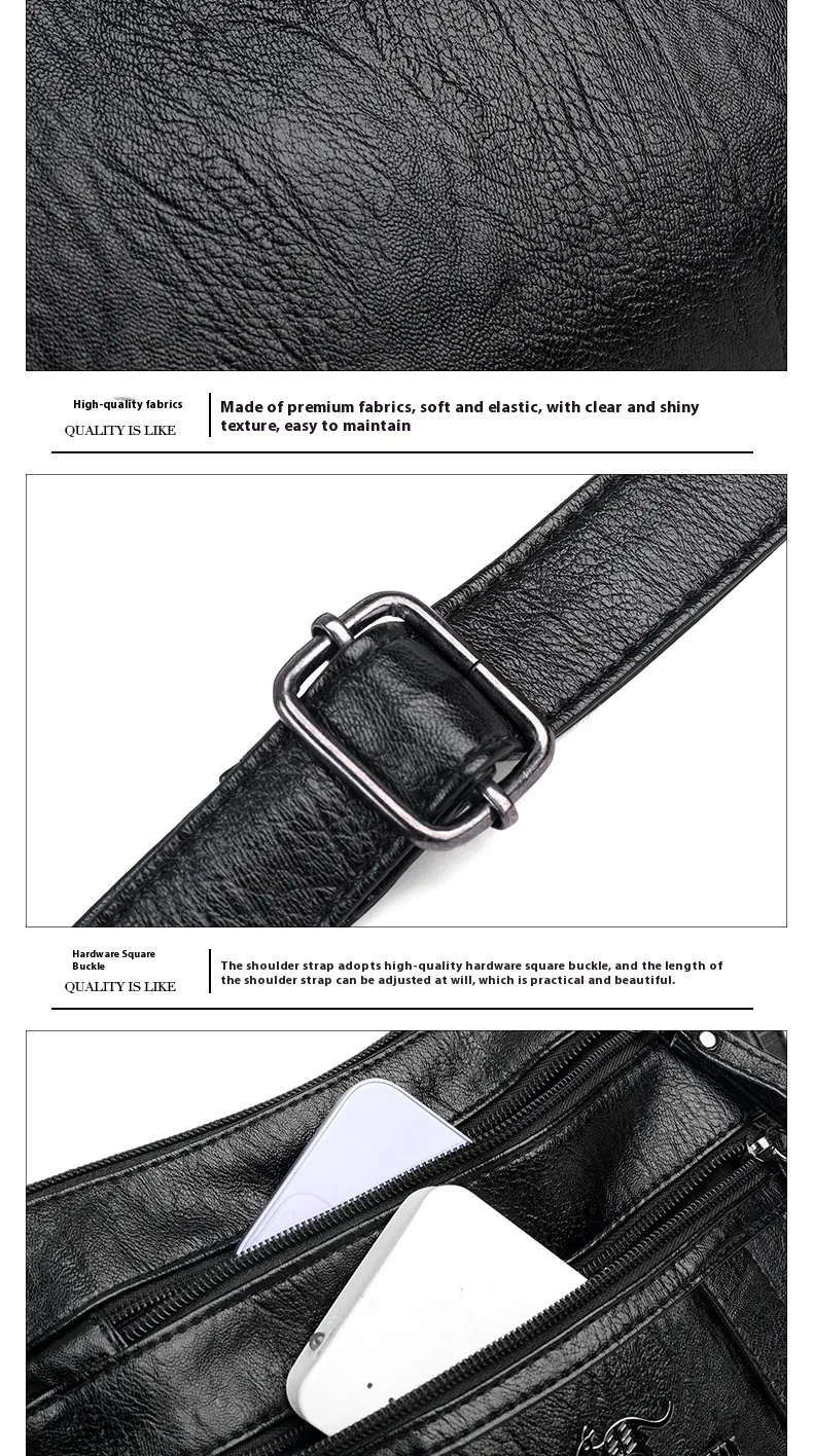 Genuine Leather Soft Multilayer Fashion Large Capacity Simple Shoulder Crossbody Bag