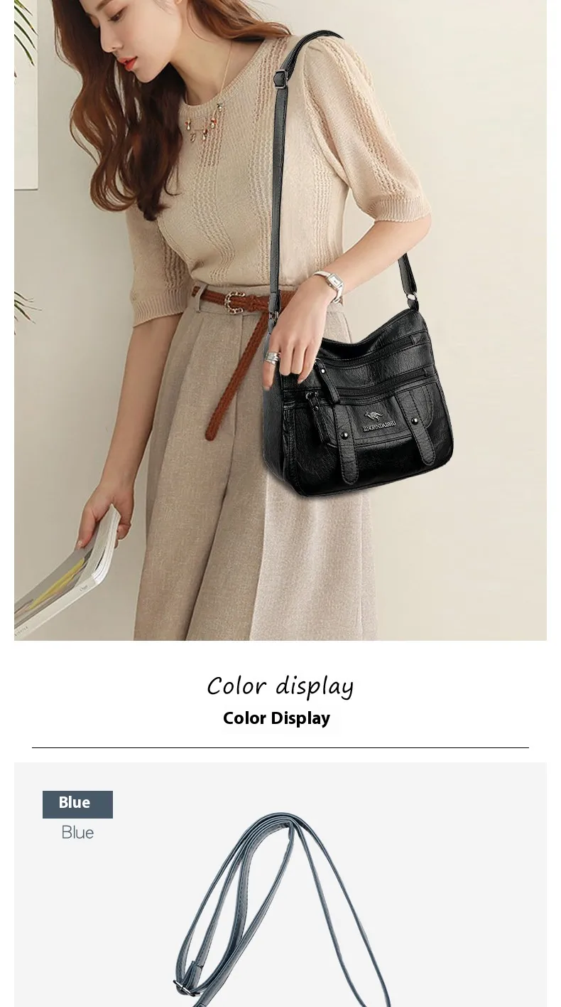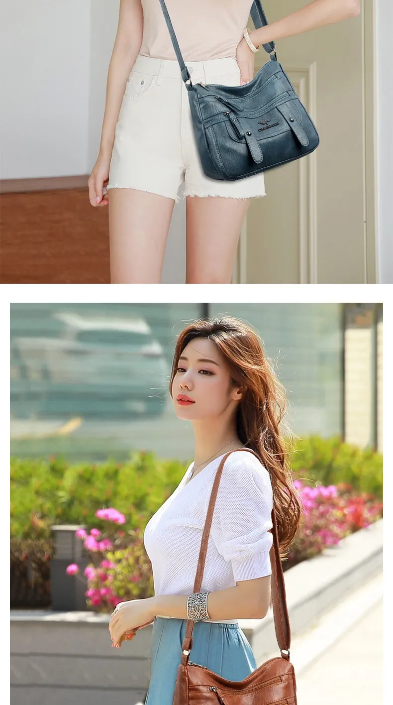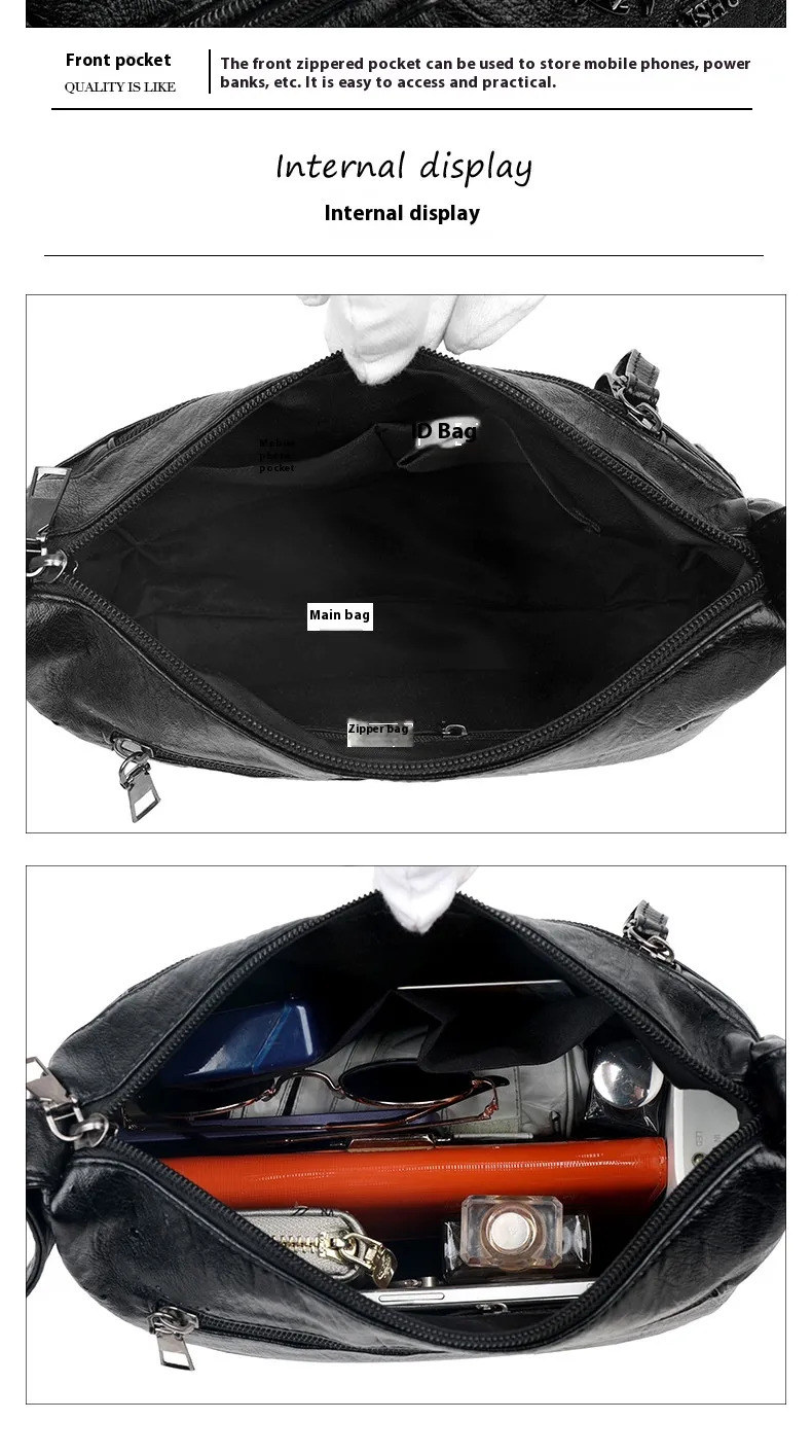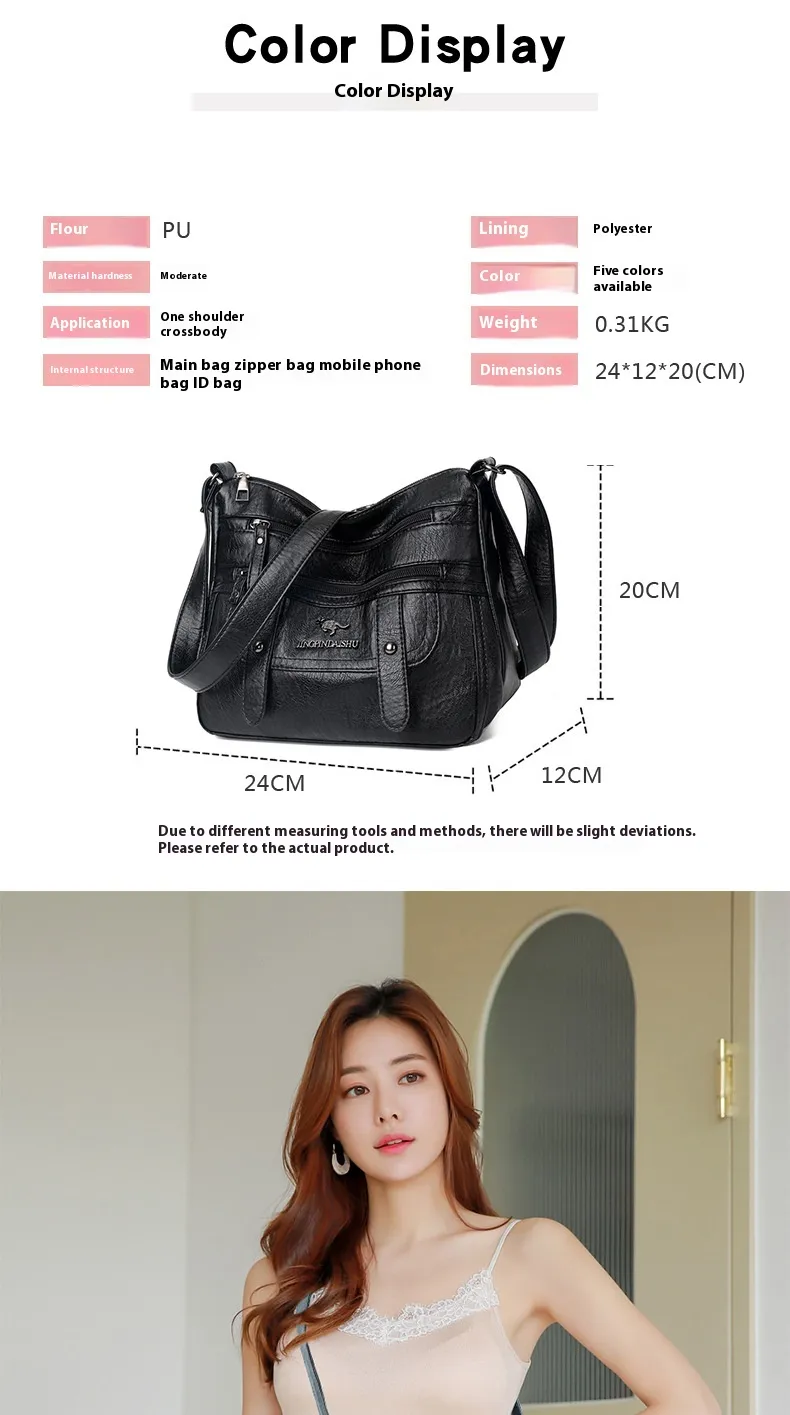 Genuine Leather Soft Multilayer Fashion Large Capacity Simple Shoulder Crossbody Bag