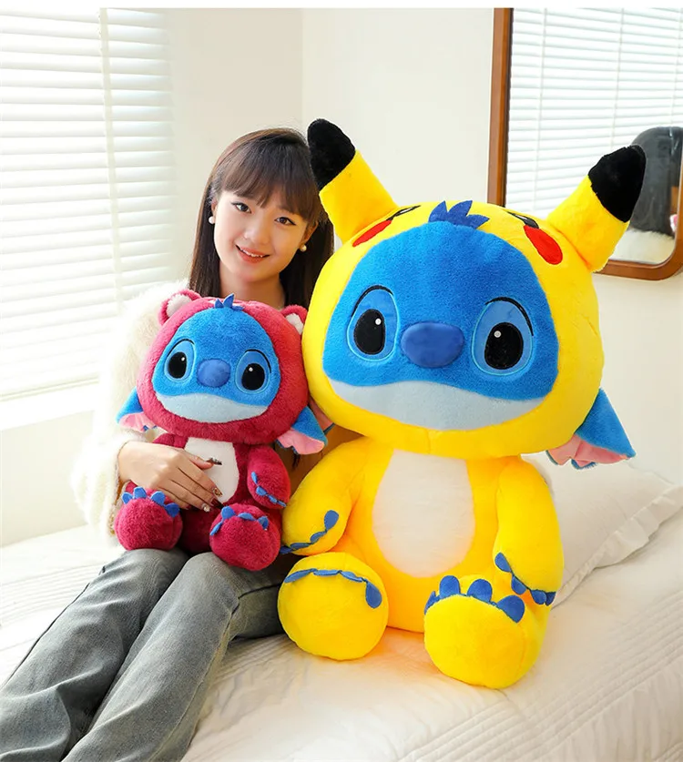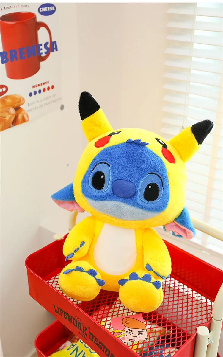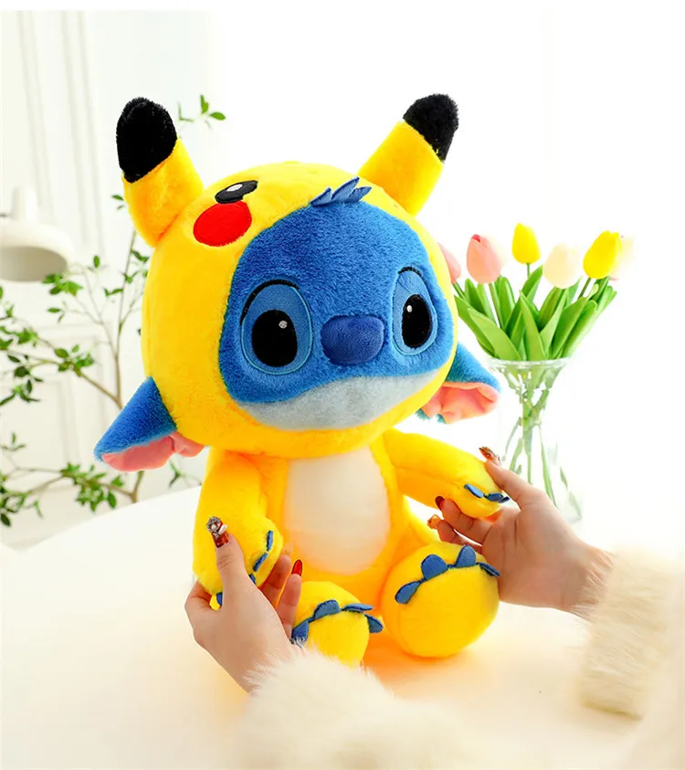 - Design: The plush doll features a unique fusion of Stitch and Pikachu, incorporating their iconic characteristics into one cuddly design. The addition of a strawberry bear element adds a whimsical touch, making it stand out in any collection.