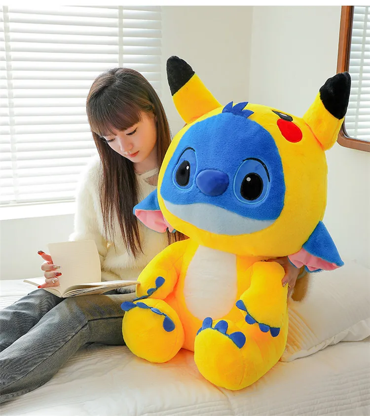 Giant Size Plush Stitch Pikachu Doll Soft Stuffed Animal Pillow, Strawberry Bear Plush Toys, Perfect Gift for All Ages