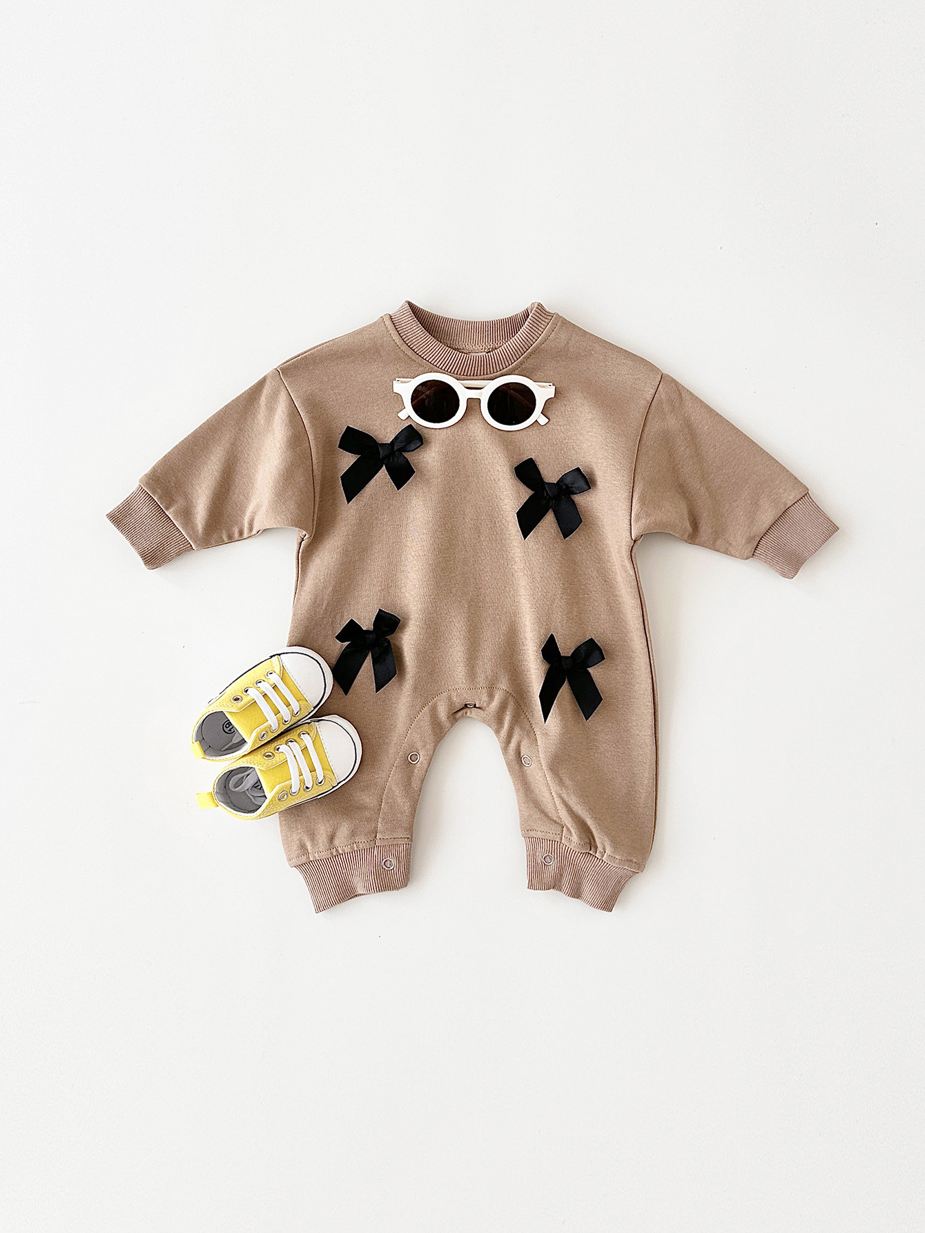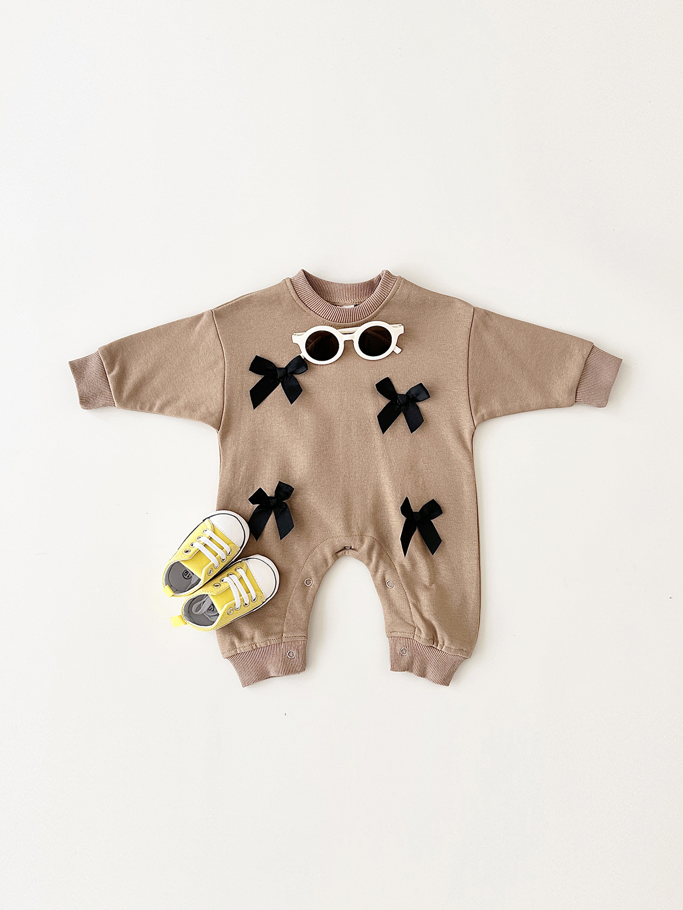 Girls' Fashion Personalized Bow Round Neck Jumpsuit - Stylish and Customizable Playwear