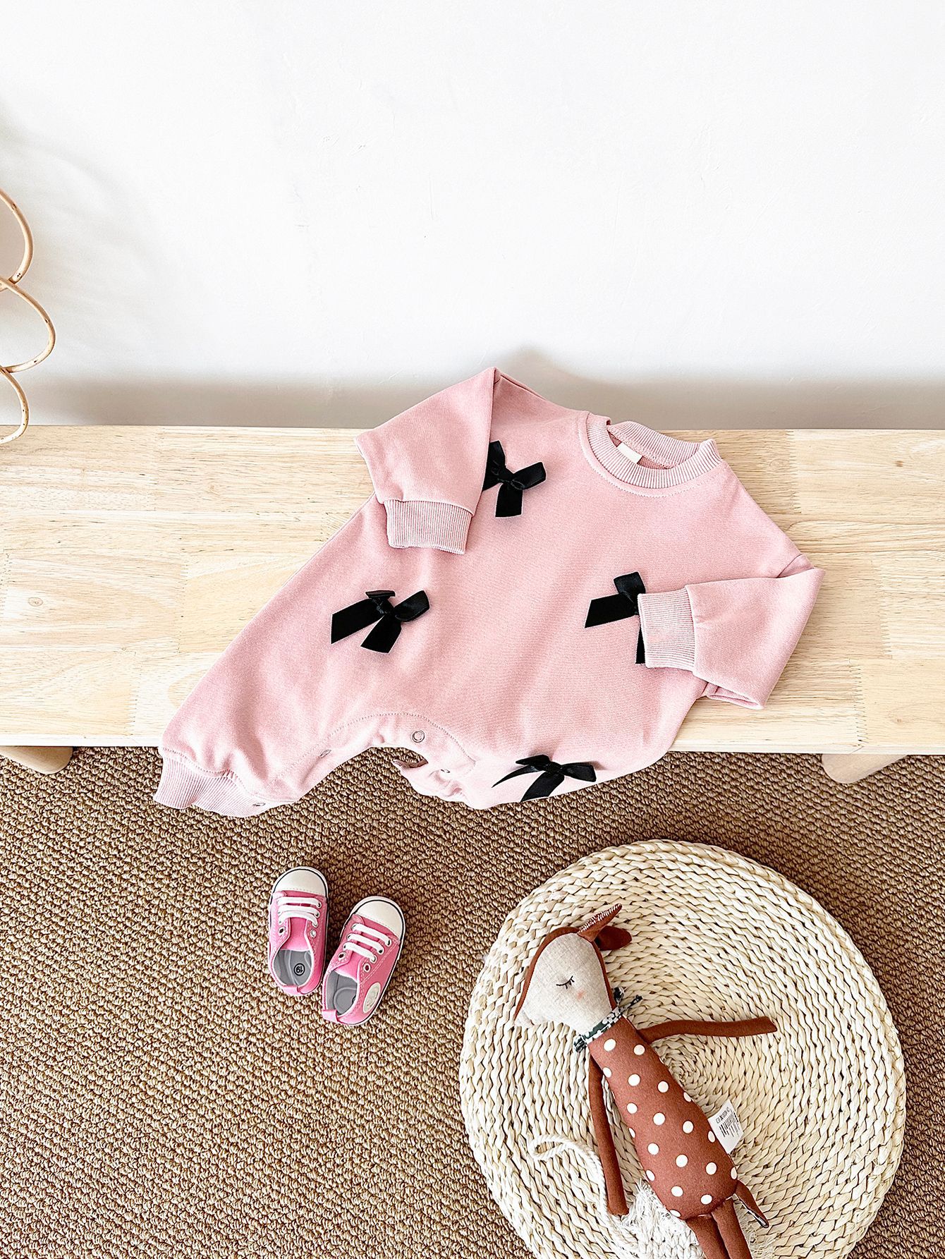 fashionista. This adorable jumpsuit features a cute bow detail and a round neck design, making it an ideal outfit for casual outings,