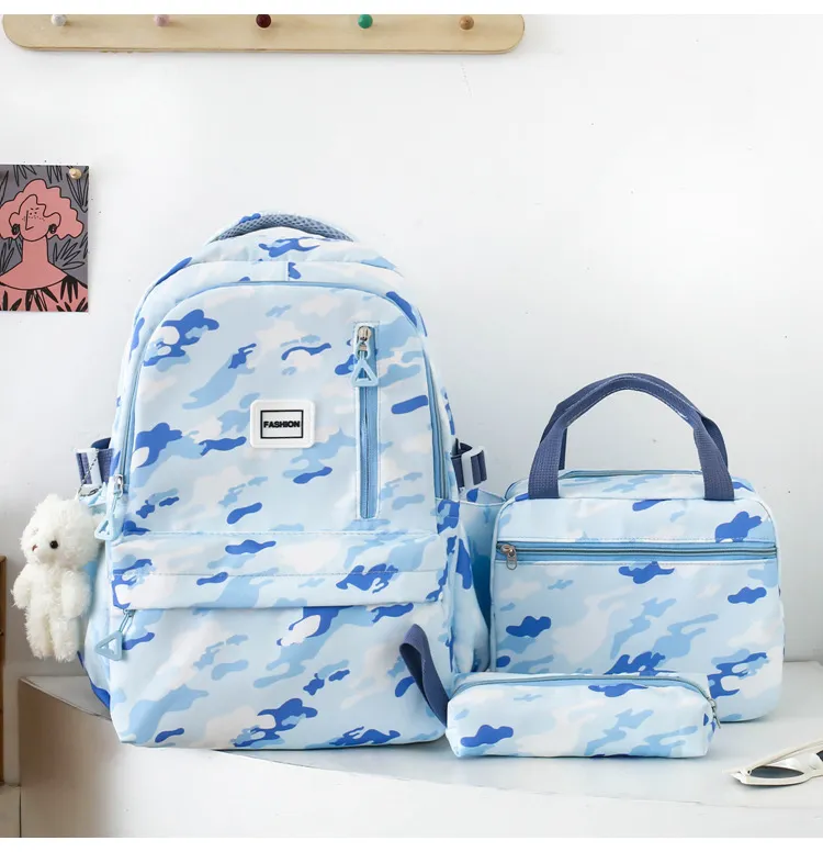 Girls' Large-capacity Backpack Three-piece Double-layer Campus Schoolbag