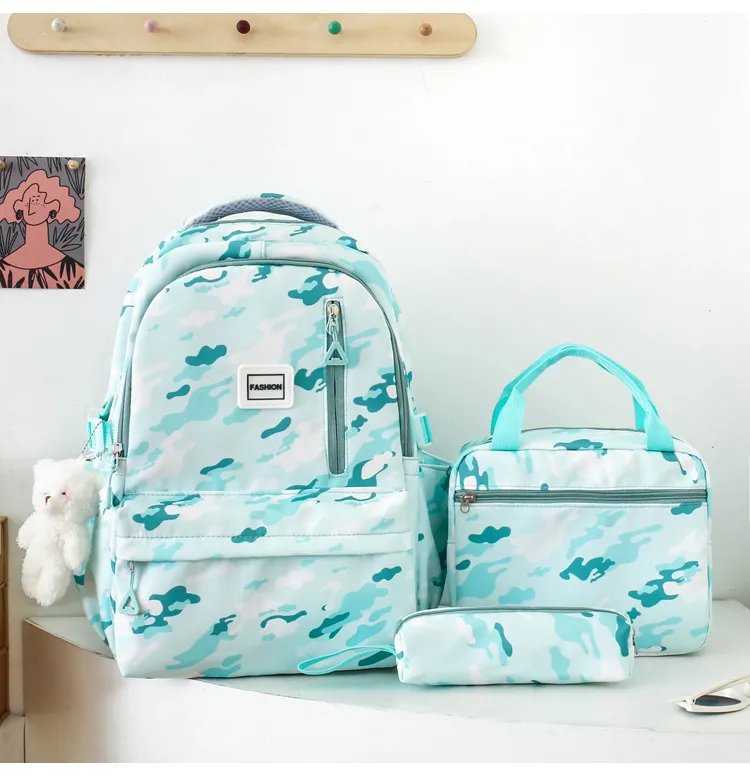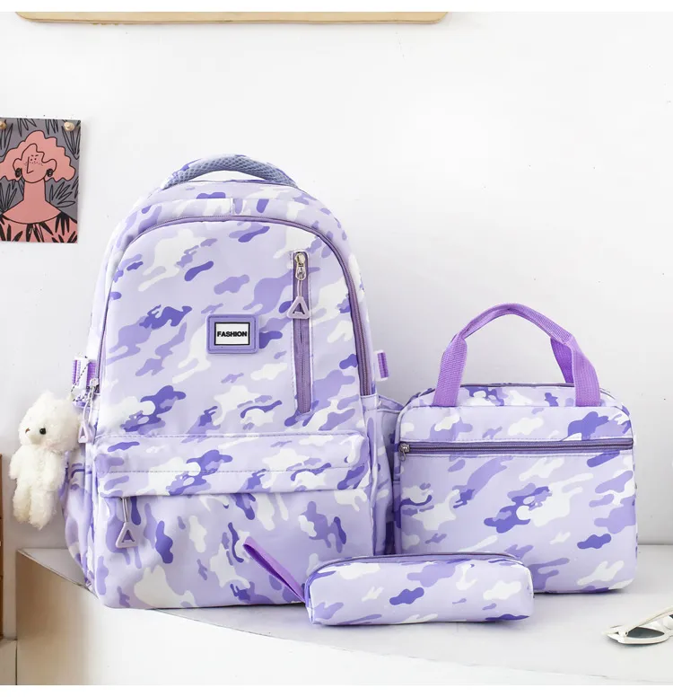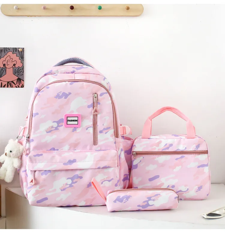 Girls' Large-capacity Backpack Three-piece Double-layer Campus Schoolbag