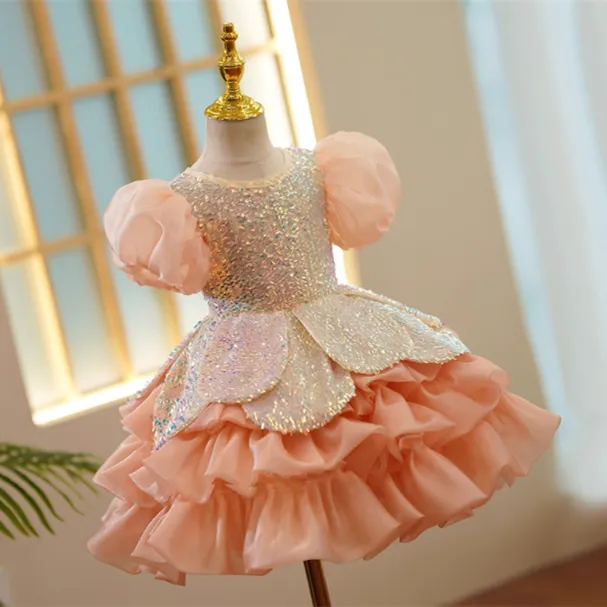 Order the Girls Pure Color Sequins Puff Sleeve Princess Dress today and let your little girl shine with confidence, comfort, and style!