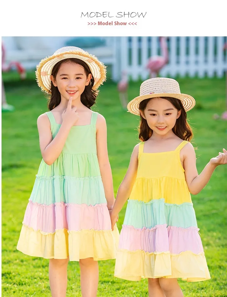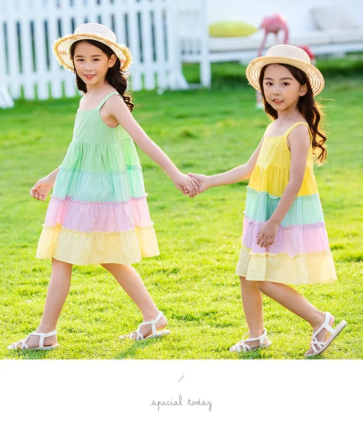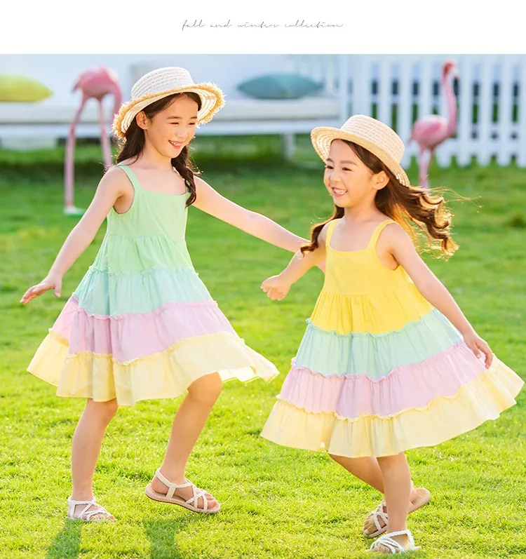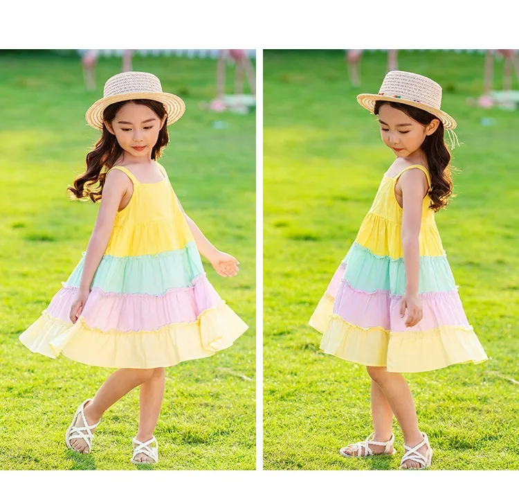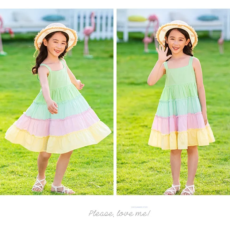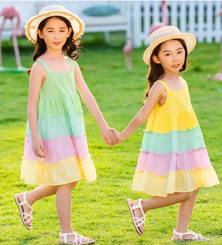 Why Choose the Girls' Rainbow Large Skirt Cotton Dress?