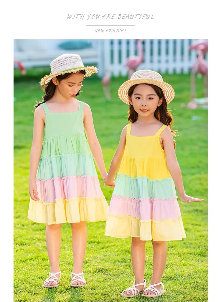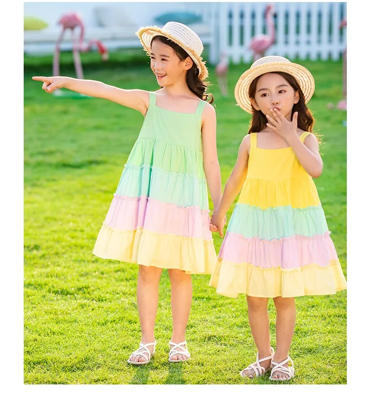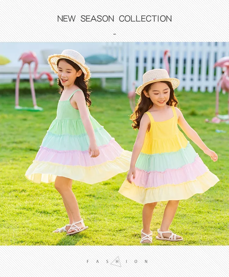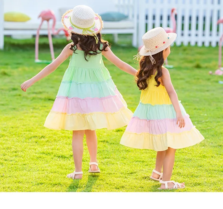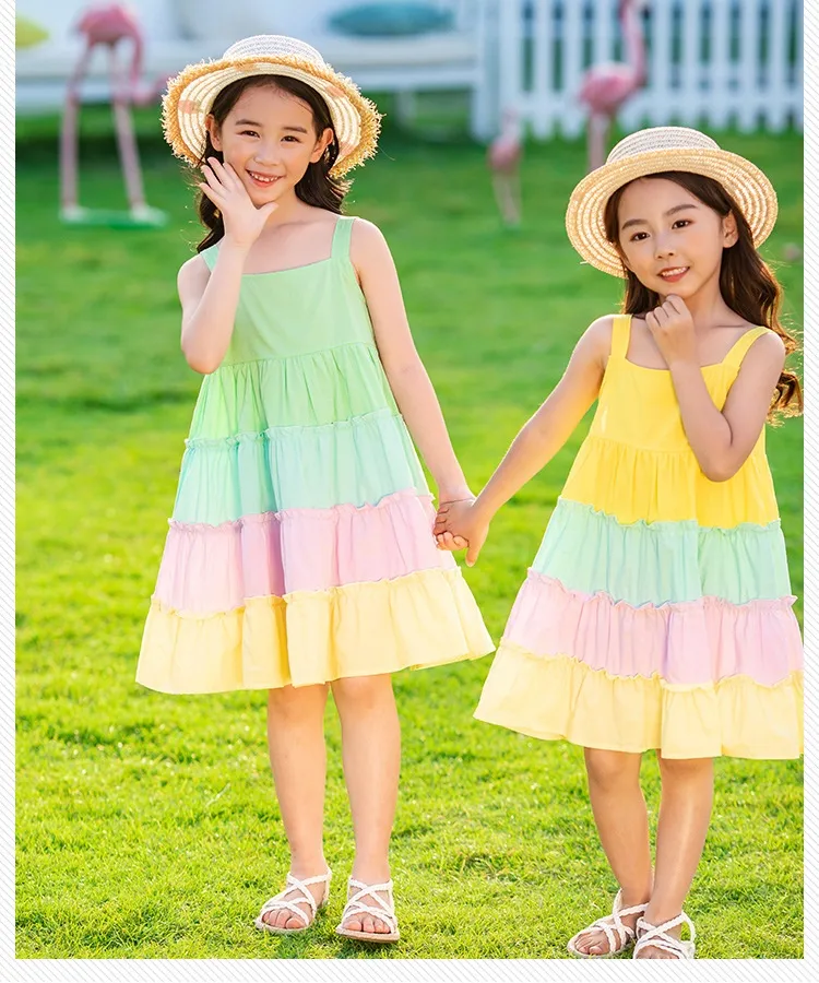 Why Choose the Girls' Rainbow Large Skirt Cotton Dress?