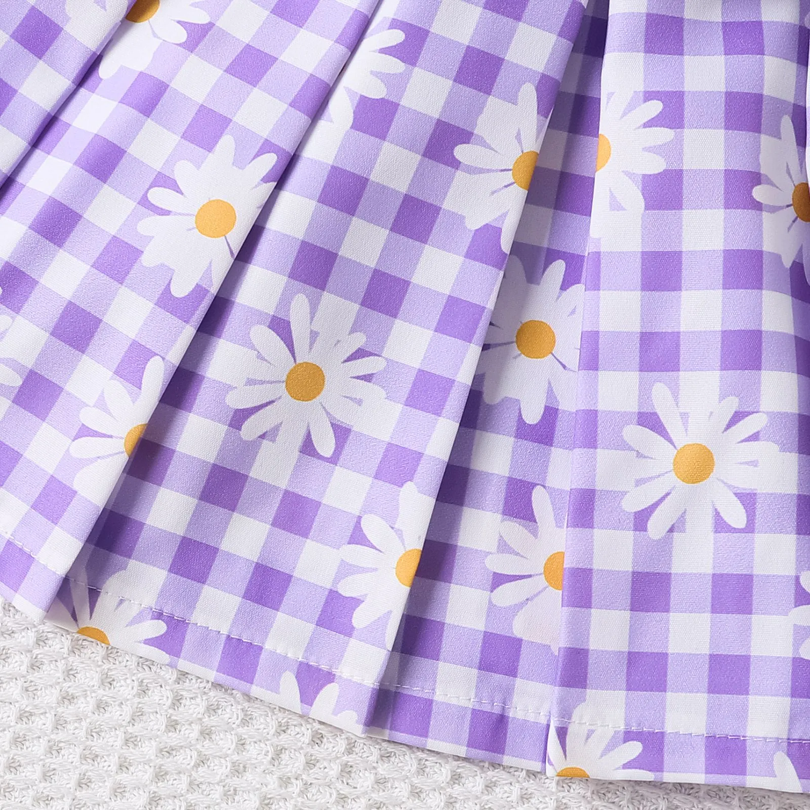 - Trendy Design: Sleeveless striped top and daisy-patterned plaid skirt for a stylish, playful look.
