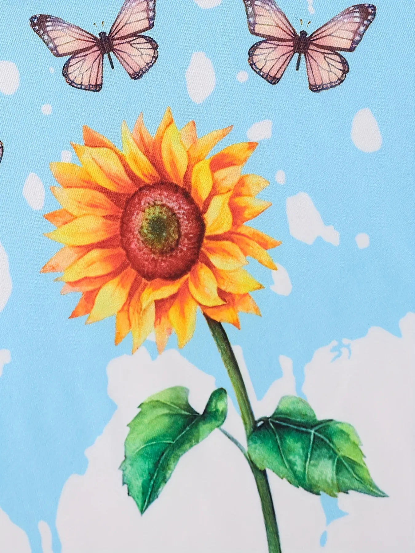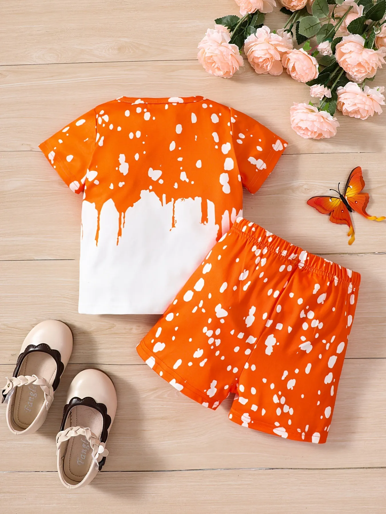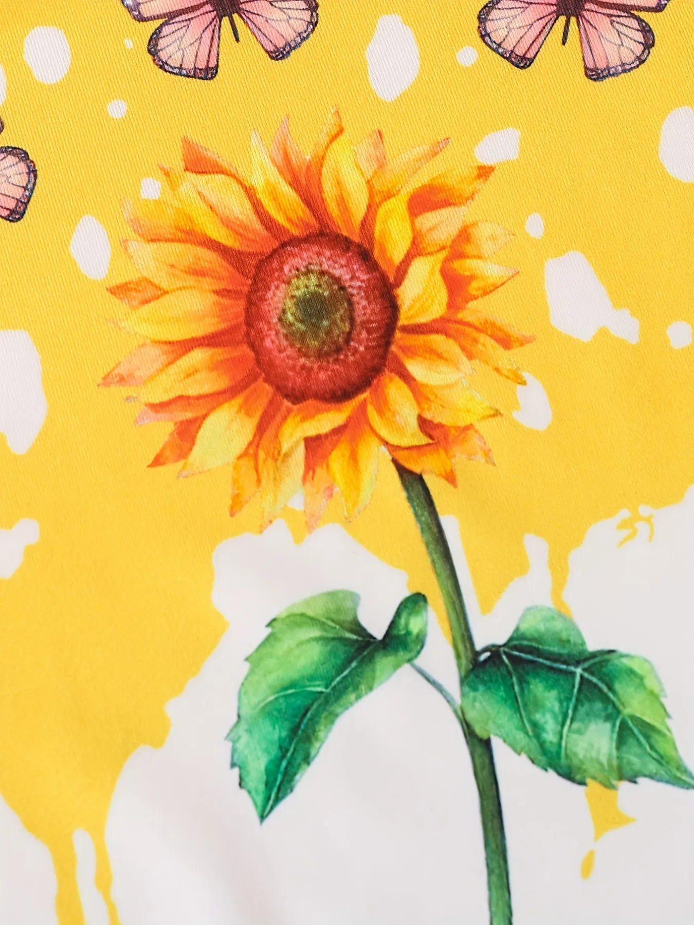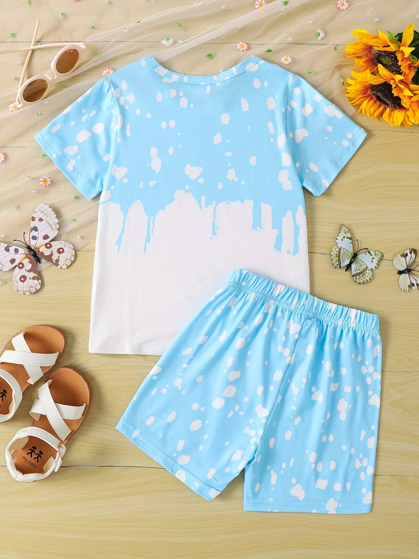 Girls Sunflower And Butterfly Pattern Short Sleeve Top Shorts Suit