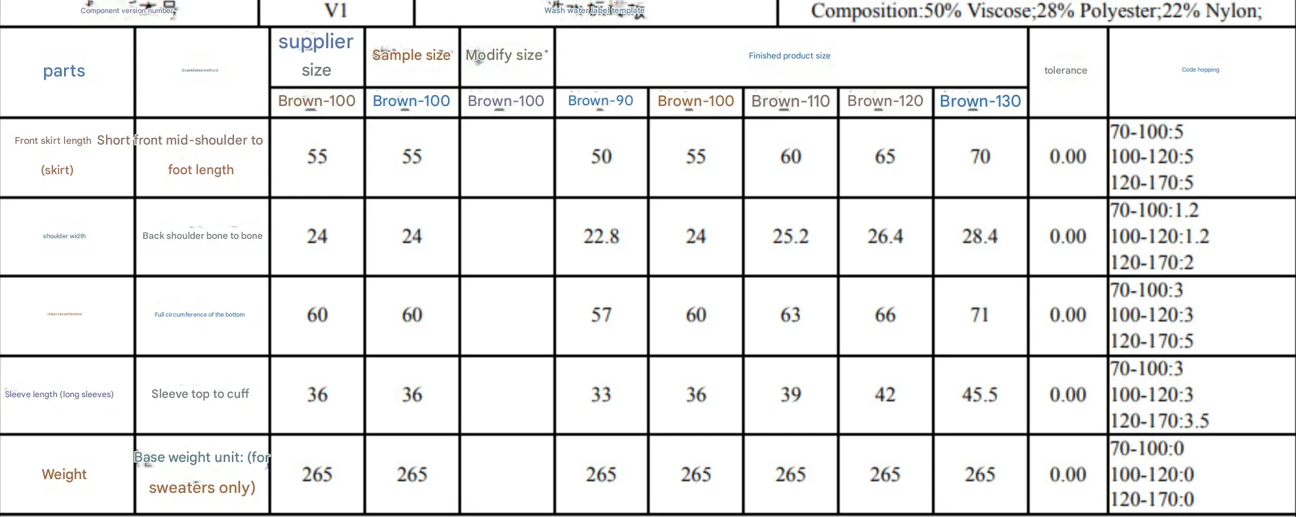 Main fabric composition