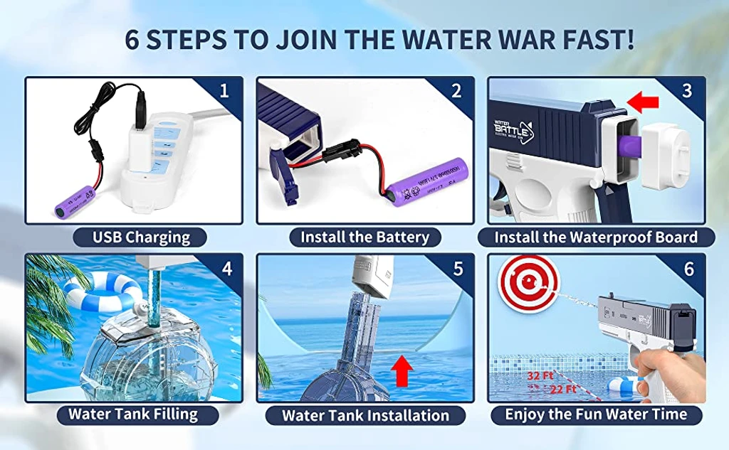 Dominate your water battles with a shooting distance of 26-32 ft!