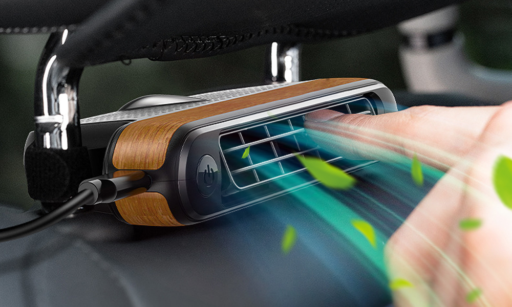 This unique product is designed to be easily attached to the headrest of any car seat, providing a refreshing breeze for both front and rear