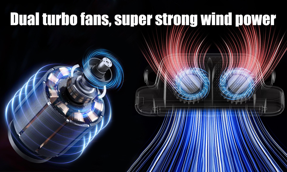 features dual powerful fans, each engineered to spin at remarkably high speeds.