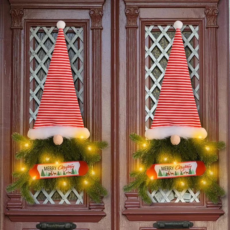 Add a whimsical and festive touch to your holiday decorations with the Glowing Christmas Wreath Upside Down Tree with Stripes and a Tall Hat. This uniquely designed décor item combines a glowing wreath, inverted Christmas tree, and playful striped patterns, topped off with a tall, eye-catching hat. Perfect for indoor or outdoor use, this decoration creates a magical holiday atmosphere that will captivate your family, friends, and guests.