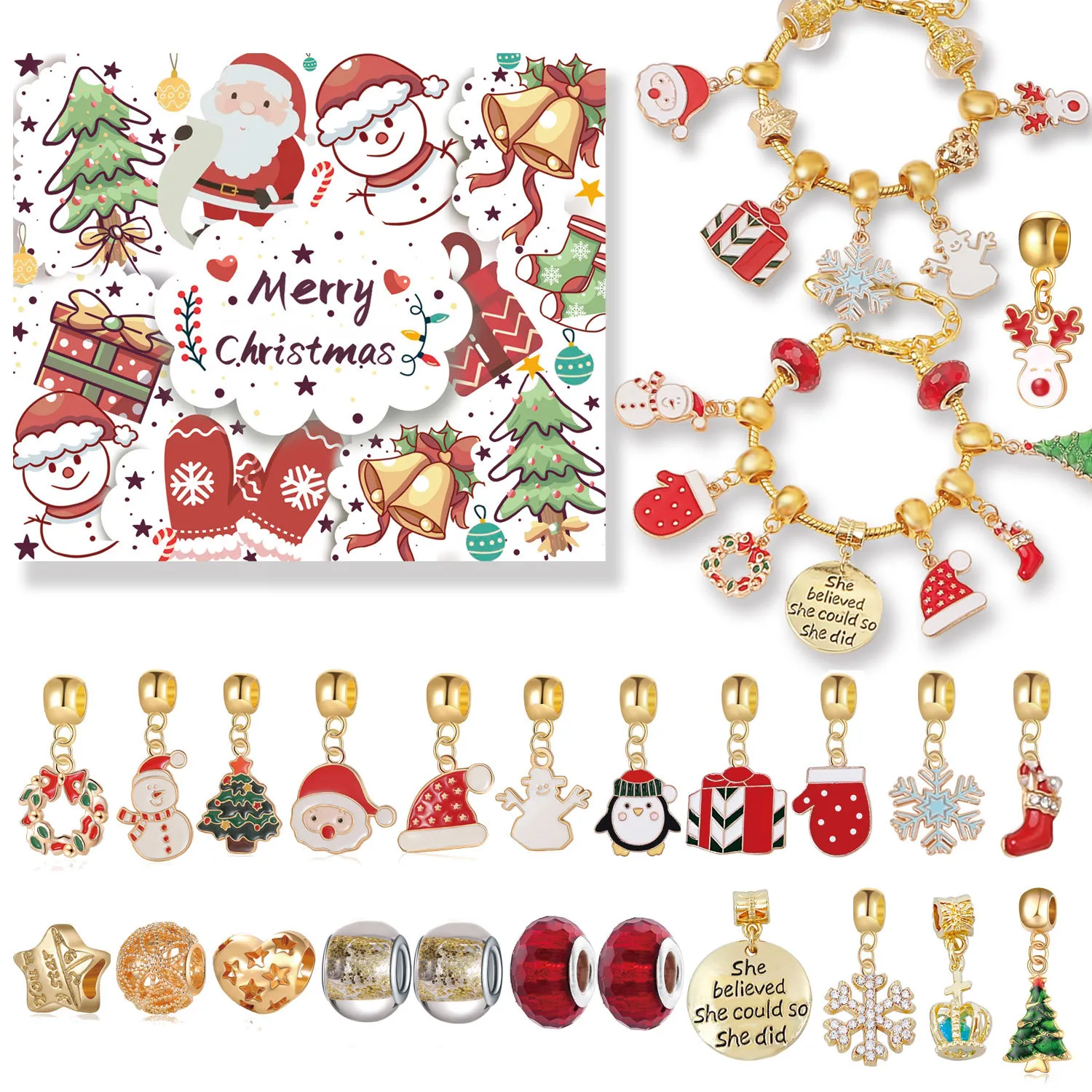 Gold Christmas Countdown Calendar Gift Suit Diy Beaded Bracelet Advent Christmas Tree Bracelet Gift