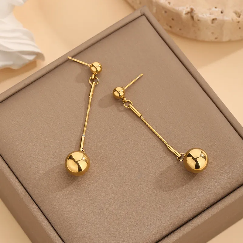 Color: X704 size steel ball necklace gold, S692 size steel ball Bracelet Gold, E078 ball tassel earrings gold