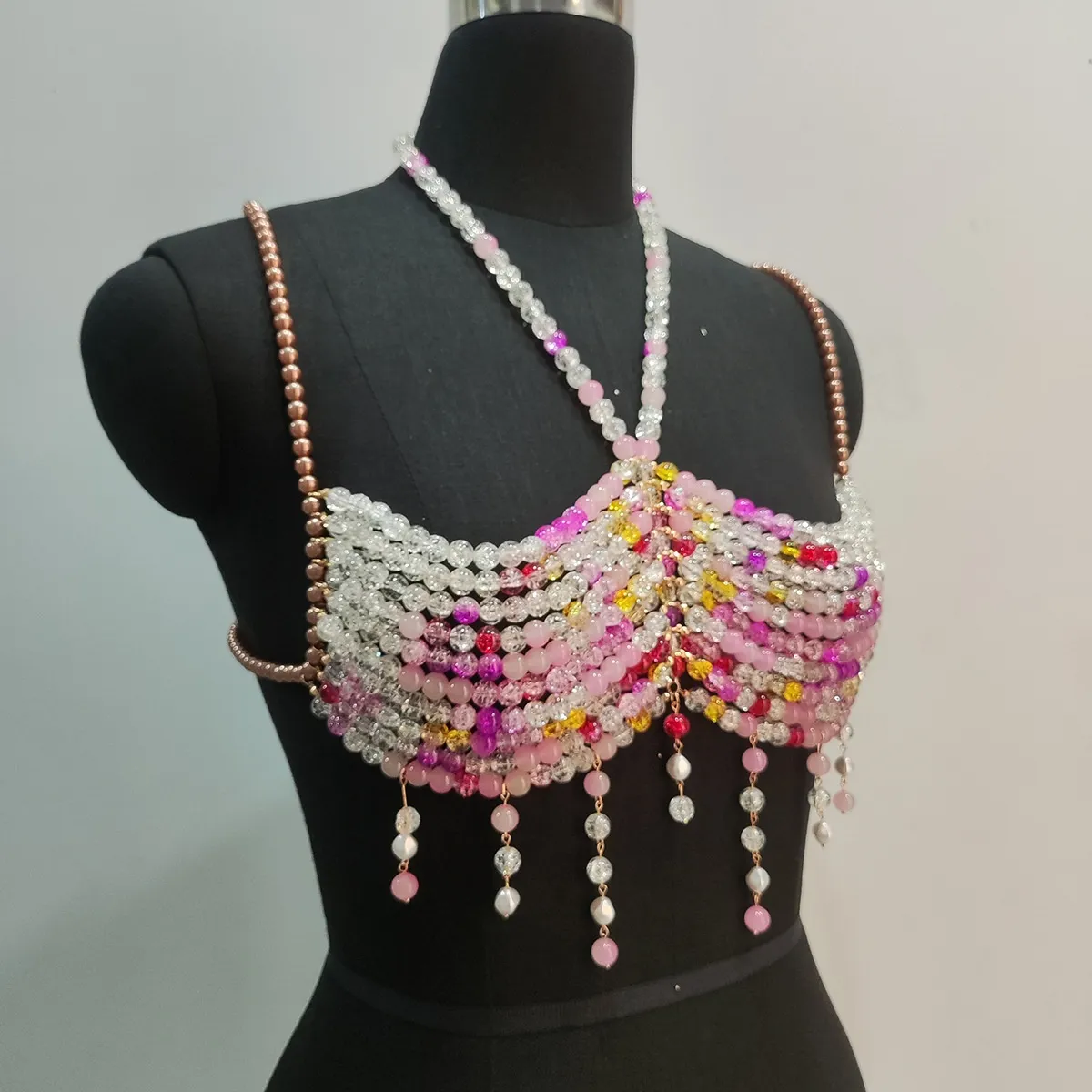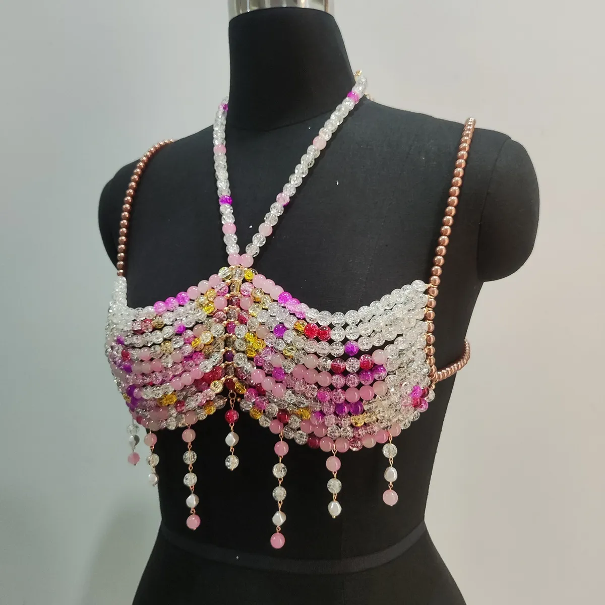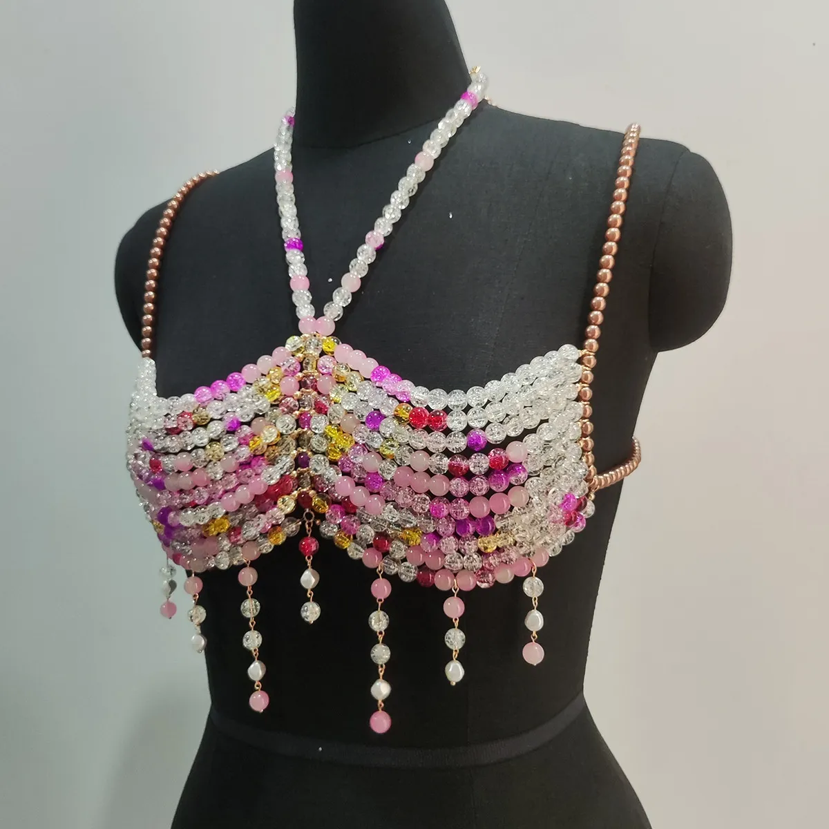 Discover Gradient Color Glass Beaded Chest Necklace: Heavy Industry Colorful Beads Body Chains