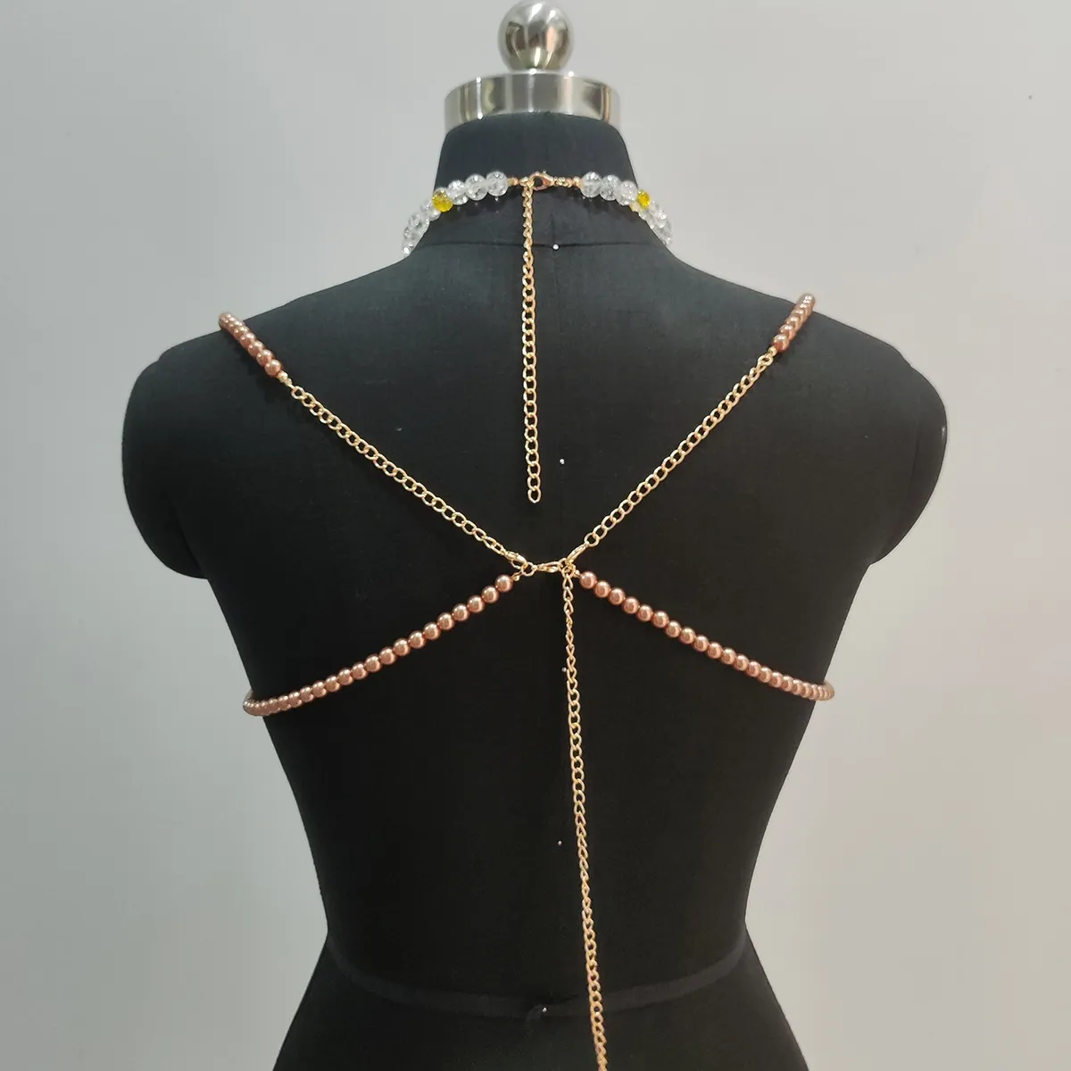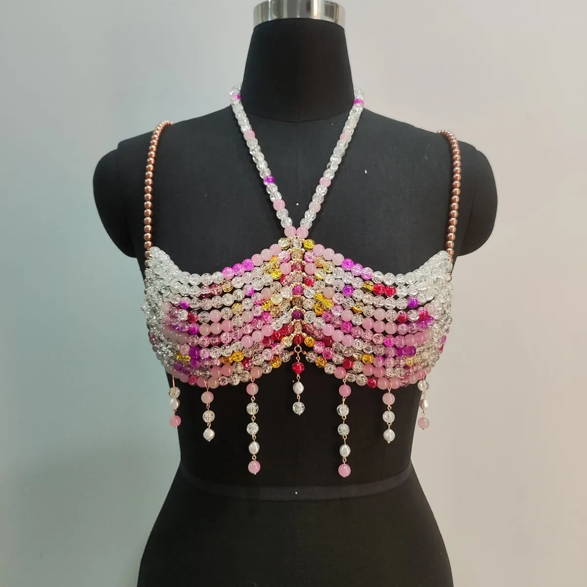 Gradient Color Glass Beaded Chest Necklace Heavy Industry Colorful Beads Body Chains