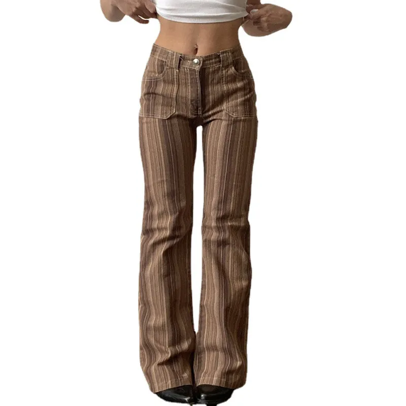 Popular elements: high waist retro casual pants