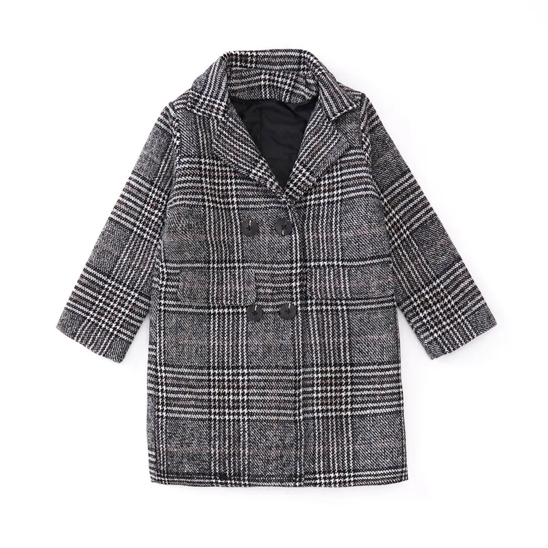 Gray plaid houndstooth coat for girls