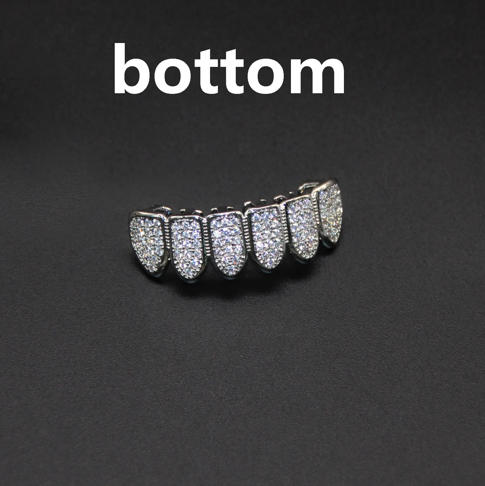 Color: silver six teeth zircon set (no fading), zircon silver upper teeth (no fading), zircon silver lower teeth (no fading), gold zircon