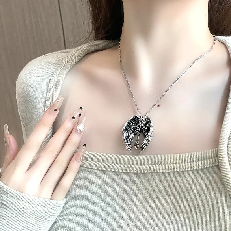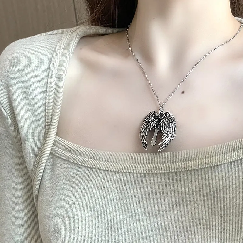 With its intricately detailed angel wings, the pendant captures the beauty of celestial imagery, making it an ideal gift for loved ones or a meaningful addition to your own collection. Perfect for everyday wear or special occasions, this necklace is a versatile statement piece that can easily complement both casual and formal outfits.