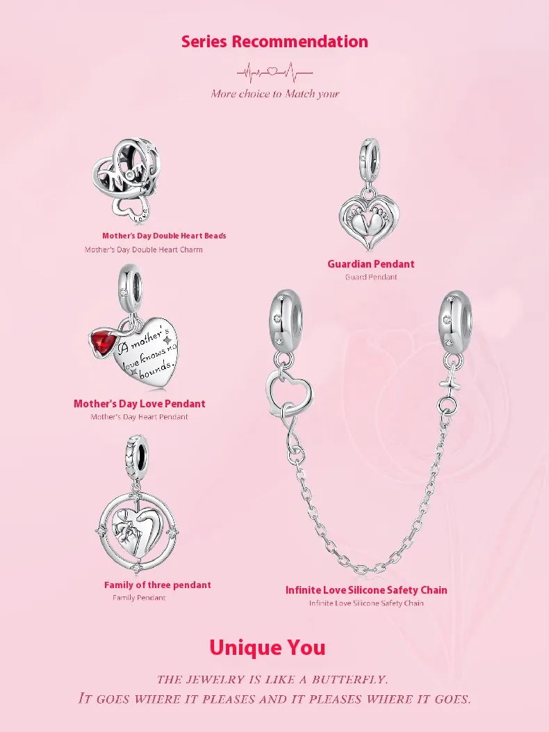 Guardian Pendant 925 Silver Creative Heart Footprints Beaded